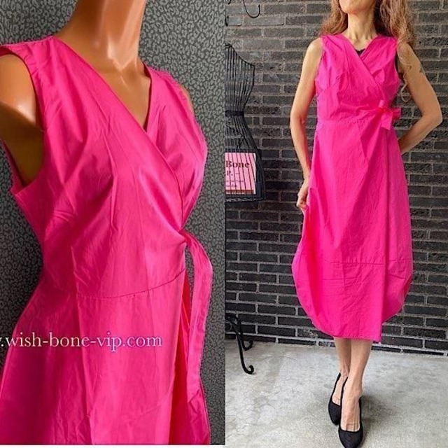 イタリア製インポートワンピース|Made in ITALY|コットン100%ラップ・バルーンワンピース|ミモレ・ロングワンピース/ピンク無地