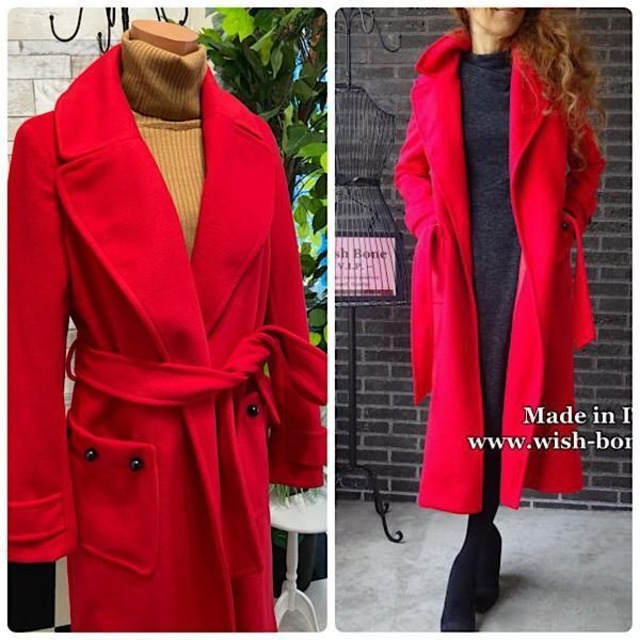 ITALY イタリア製インポート RINASCIMENTO/リナシメント|厚手ロングコート/レッド(XS) アウトレットSALE返品交換不可