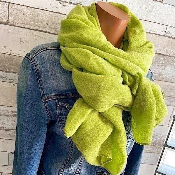 ほわほわっとした肌触りが良く暖かいおすすめの無地のストールです。何てことなさそうな無地のストールですが、この色合いは持ってると絶対コーデしやしですよ。お顔周りが明るく華やぎ、寒い冬に気分上がります。