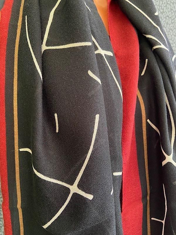肌触りもよく、巻く位置によって色んな雰囲気を楽しめるのが面白いので1枚持ってると毎回違ったコーデが作れそうなステキなストールです。