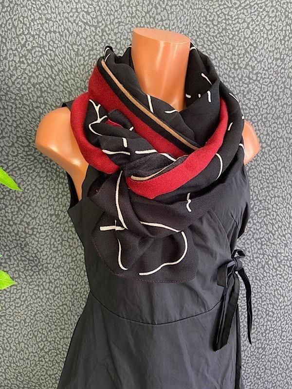 ぐるっと巻くだけでも良いですし、垂らすだけでもオシャレ。肩から羽織るように掛けるだけでも、ガラッとイメージが変わり新鮮な気分♪です。プレゼントにも最適です。