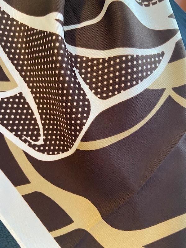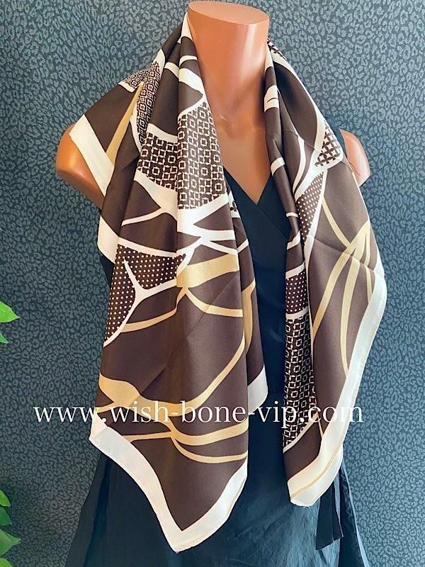 程よいツヤがキレイなヨーロッパで人気のスカーフ。紫外線が気になる首元や室内でアクセサリー感覚にちょこっと巻いたり。飽きてきたらバッグにぐるぐるっと巻いたり。。素材のツヤ感がドレッシーになり、大人のカジュアルをキレイにカッコよくまとめてくれるマストアイテム!ワンポイントにおすすめです。
