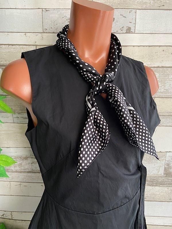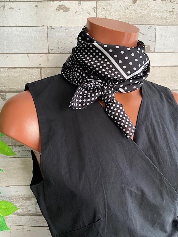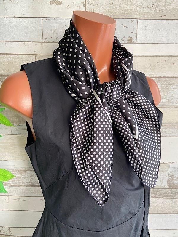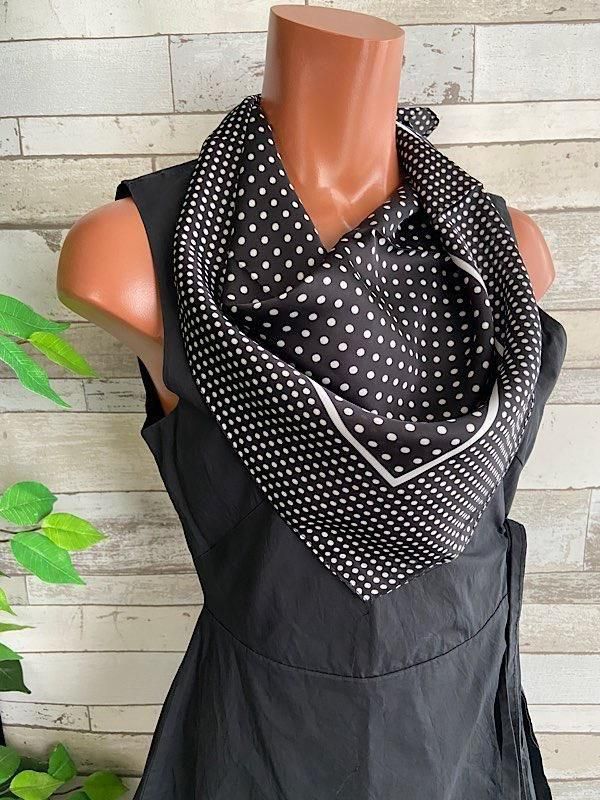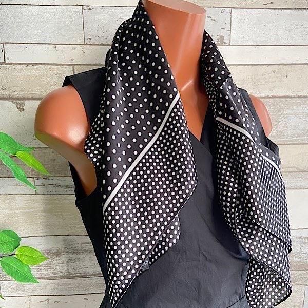*【イタリアインポート】 67x67cm スクエア アレンジ小さめスカーフ ツヤスカーフ・バッグスカーフ/ブラック&ホワイト・ドット