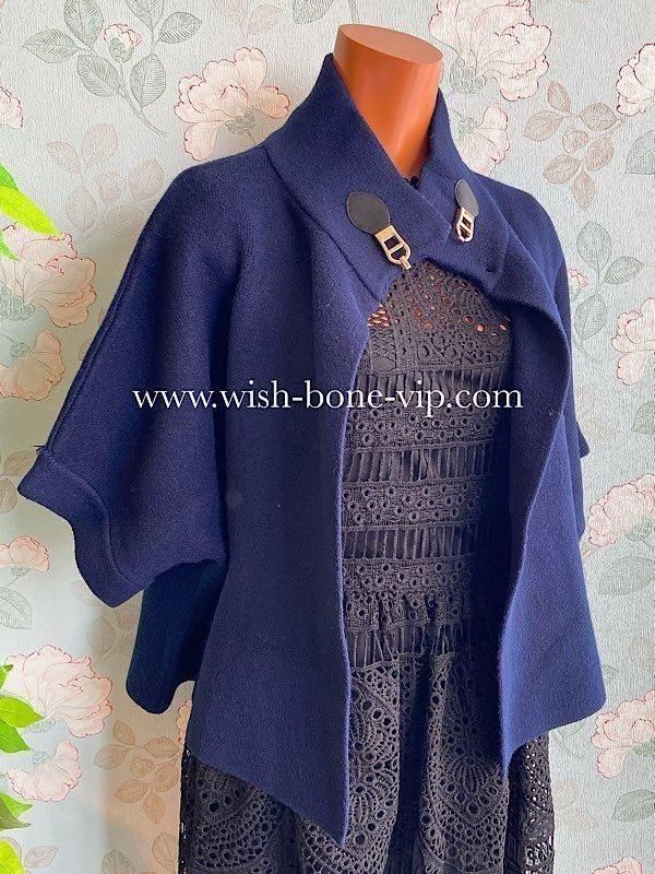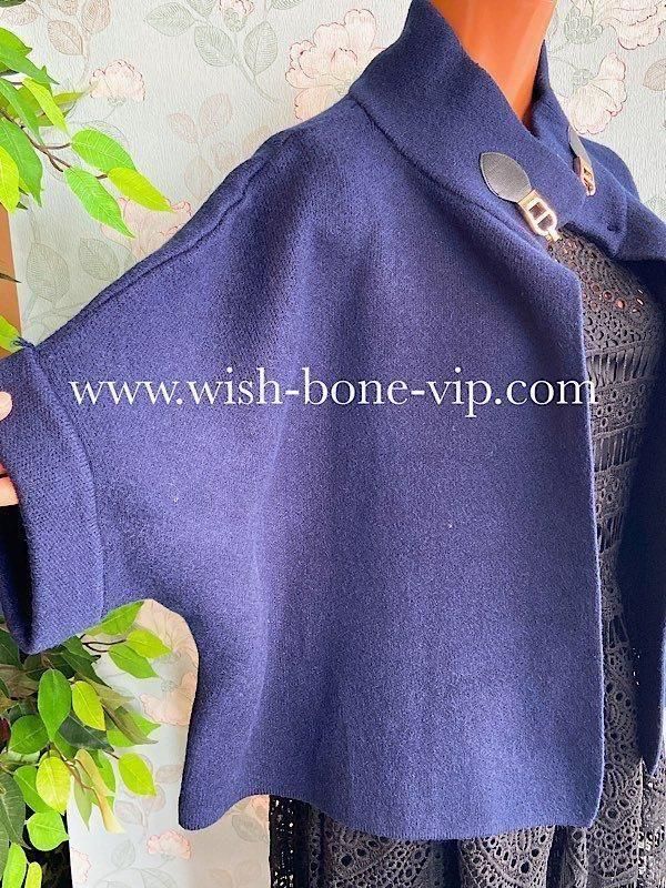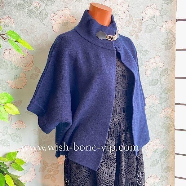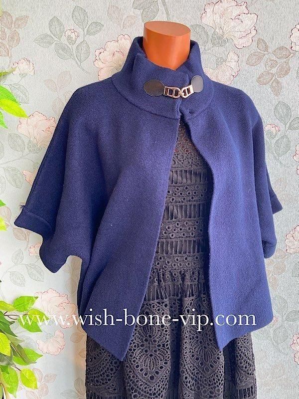 クラシカルなデザインがステキなマント、ポンチョの様なアウター、厚手ニットです。お首のところだけ金具で留めれますが、そのまま留めずに羽織っても良いかも。