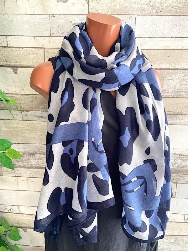 *インポート 大判ストール|190cm ロングストール・スカーフ|ブルー&ネイビーカモフラ|VISCOSE