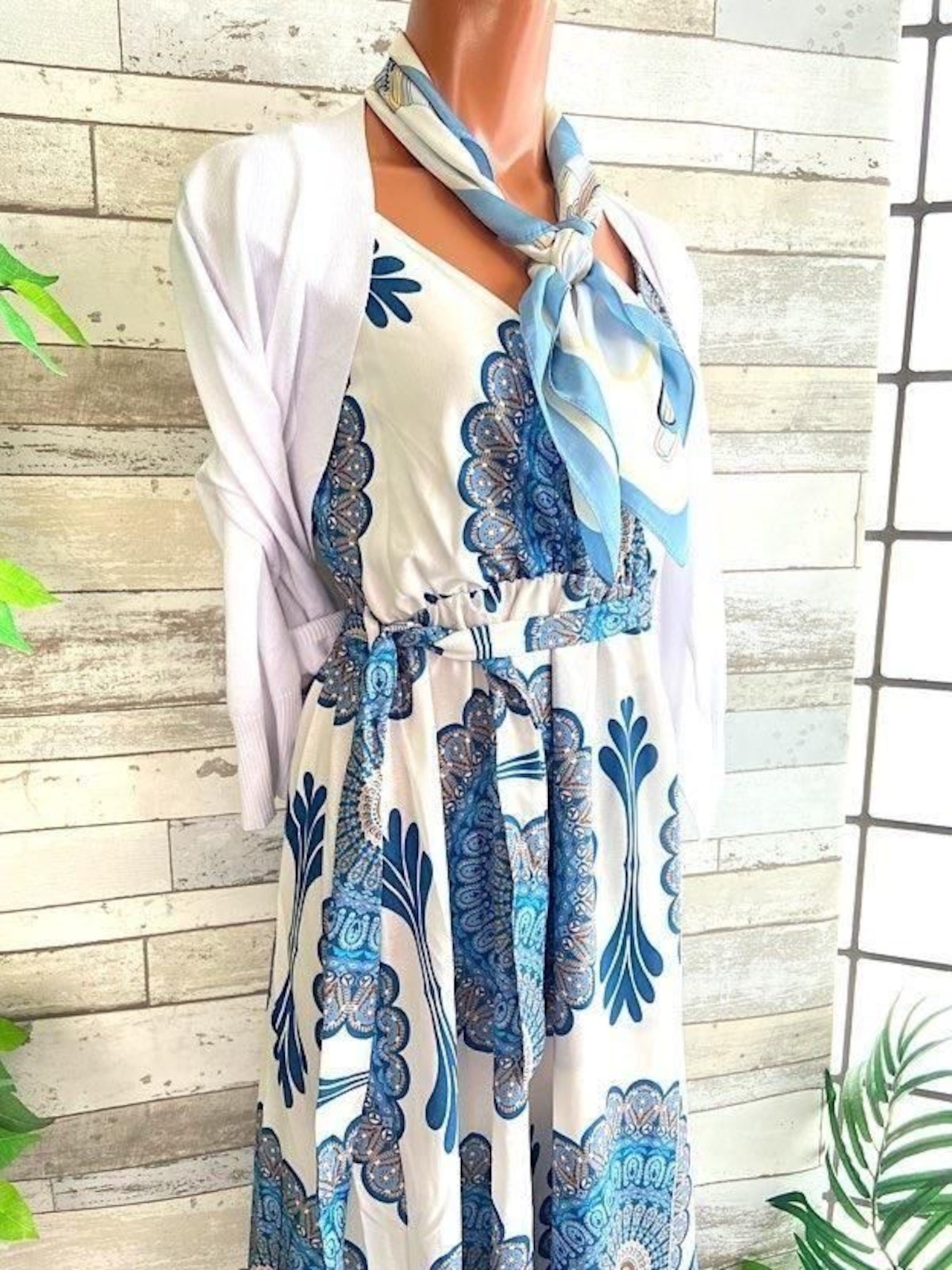 フランスインポート ロング・マキシスカート&トップス セットアップ /ホワイト&ブルー(S)(M)(L)