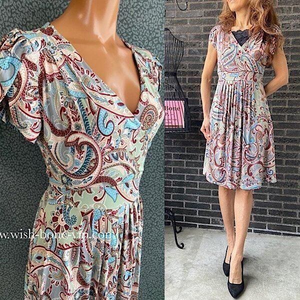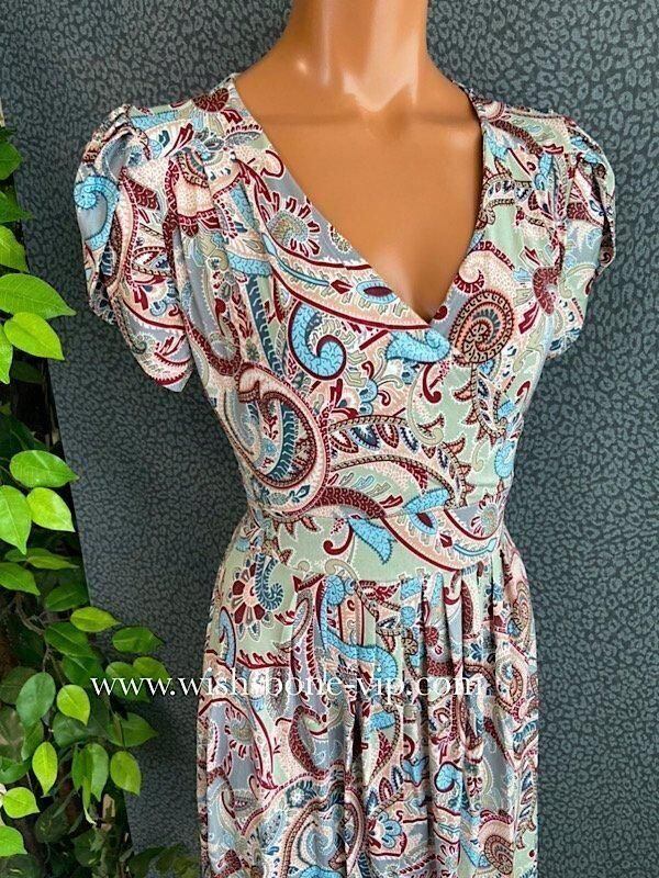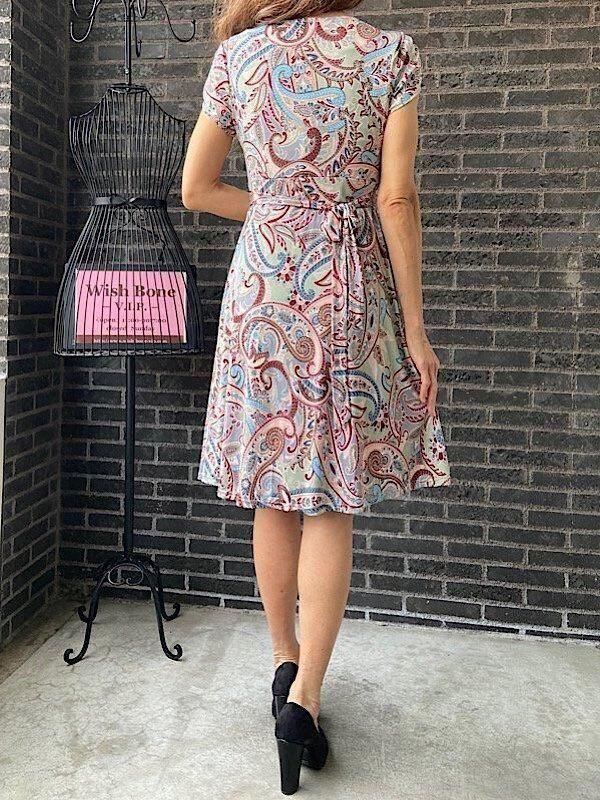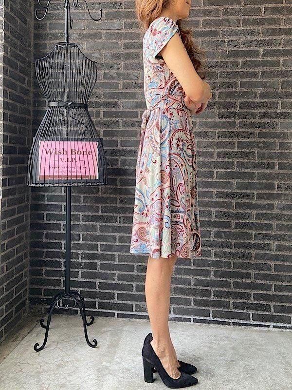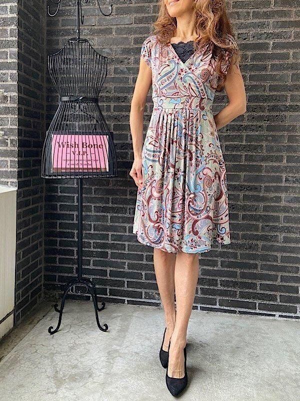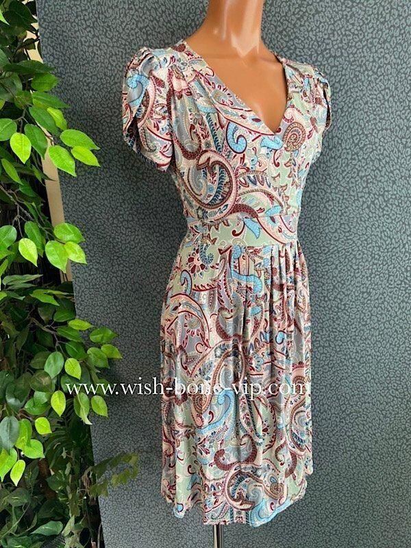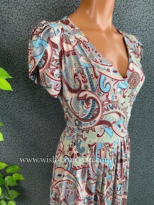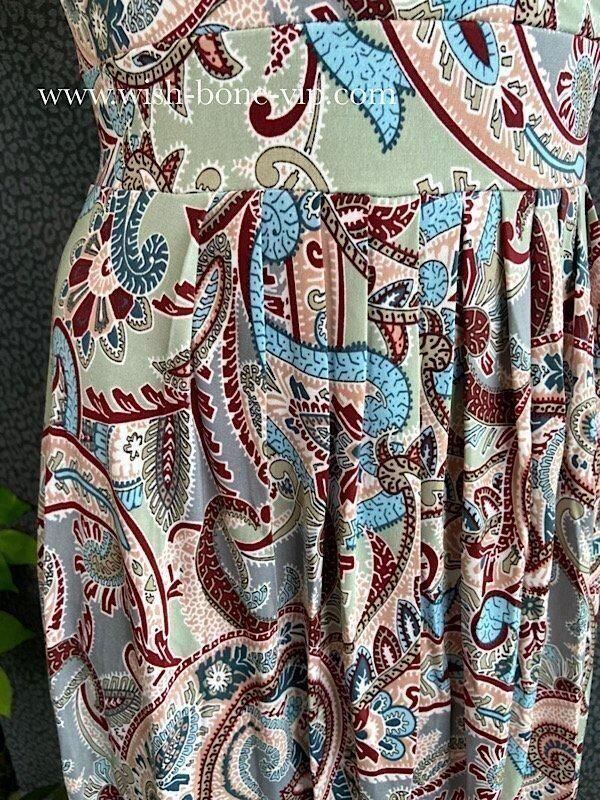 フランス製インポートワンピース|FIFILLES de PARIS/フィフィーユ・パリ ストレッチ製ジャージ 膝丈ワンピース/ブルーグリーン系ペイズリー