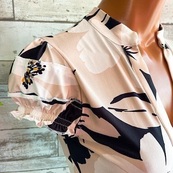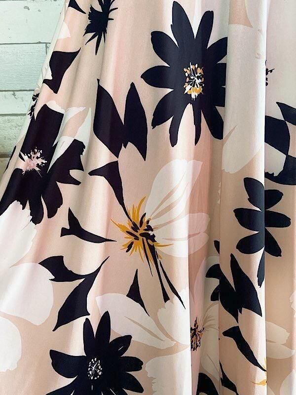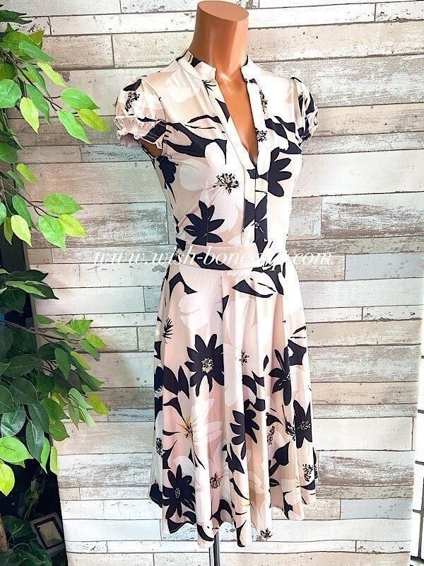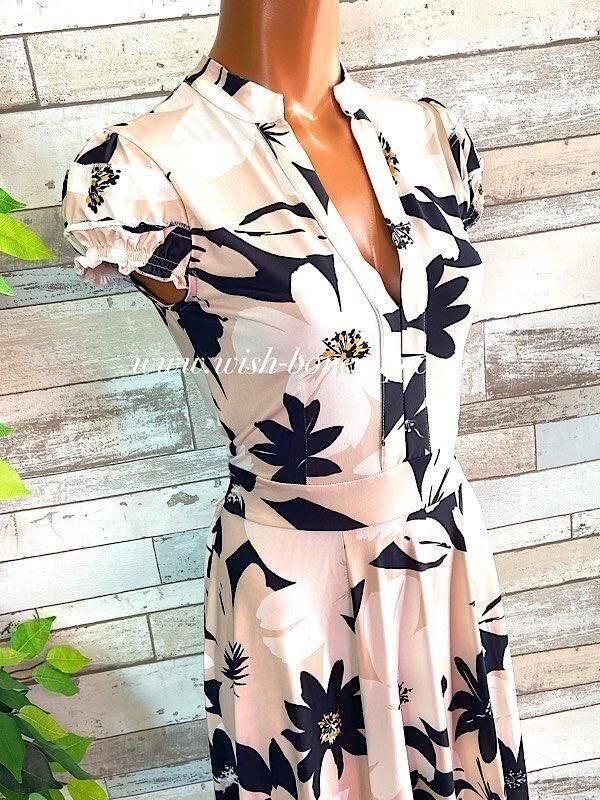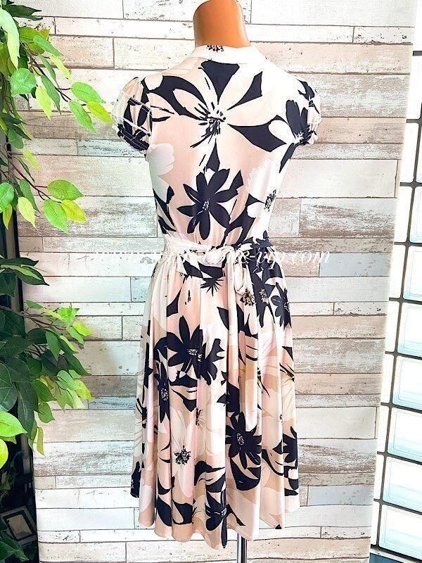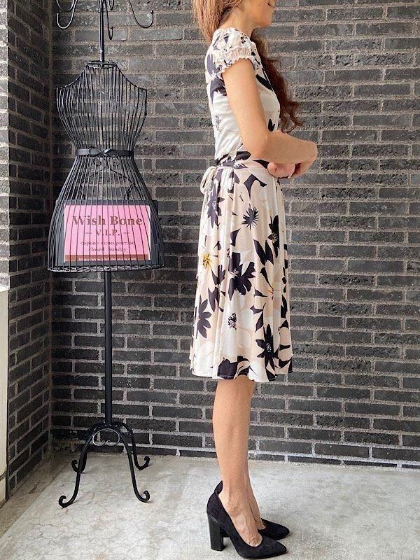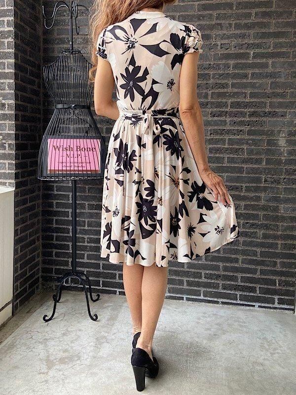 フランス製インポートワンピース|FIFILLES PARIS/フィフィーユ・パリ|パフスリーブ膝丈ワンピース|ストレッチジャージ/ベージュ系フラワープリント