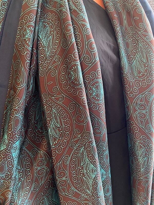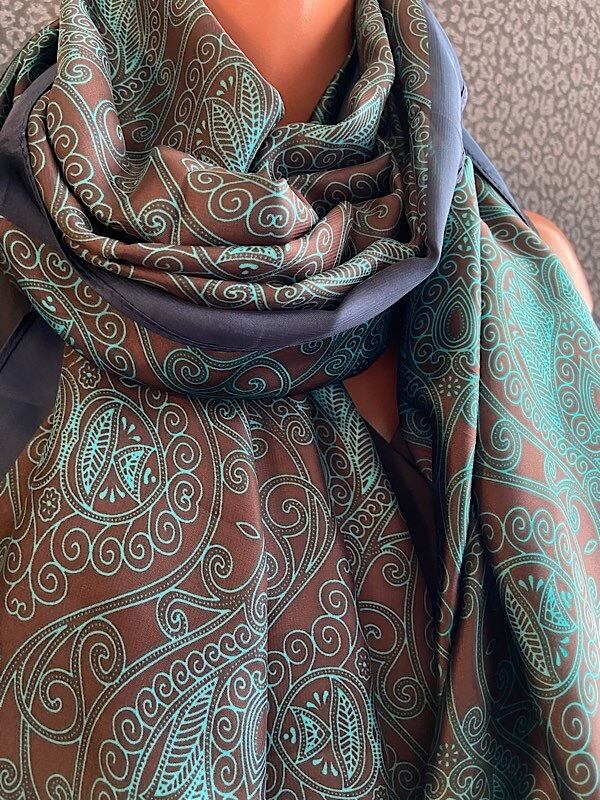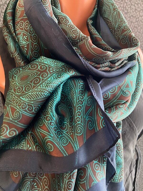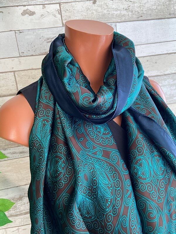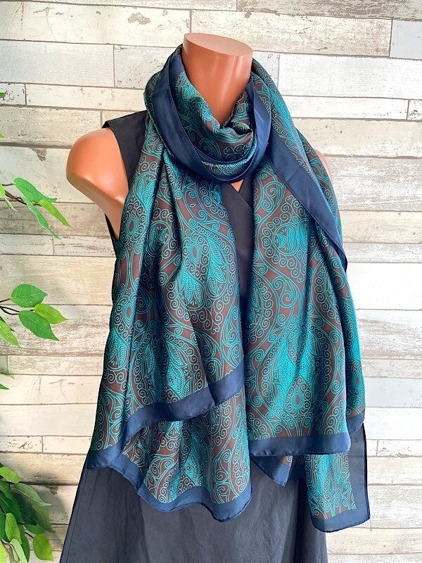 なめらかで程よいツヤっぽさがキレイめなコーデにピッタリ!サラッと首にかけるだけで紫外線対策や、シンプルなお洋服にワンポイント!ステキです。レストランやバーなどお食事の時に巻いててもキレイです。
