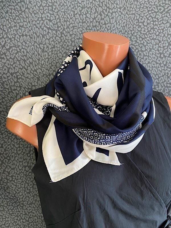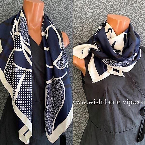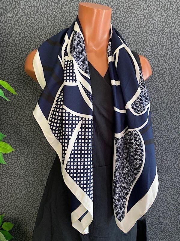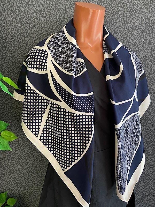 インポート大判ストール 90cm 大判スクエア Silk Feeling おしゃれなツヤスカーフ/ネイビー