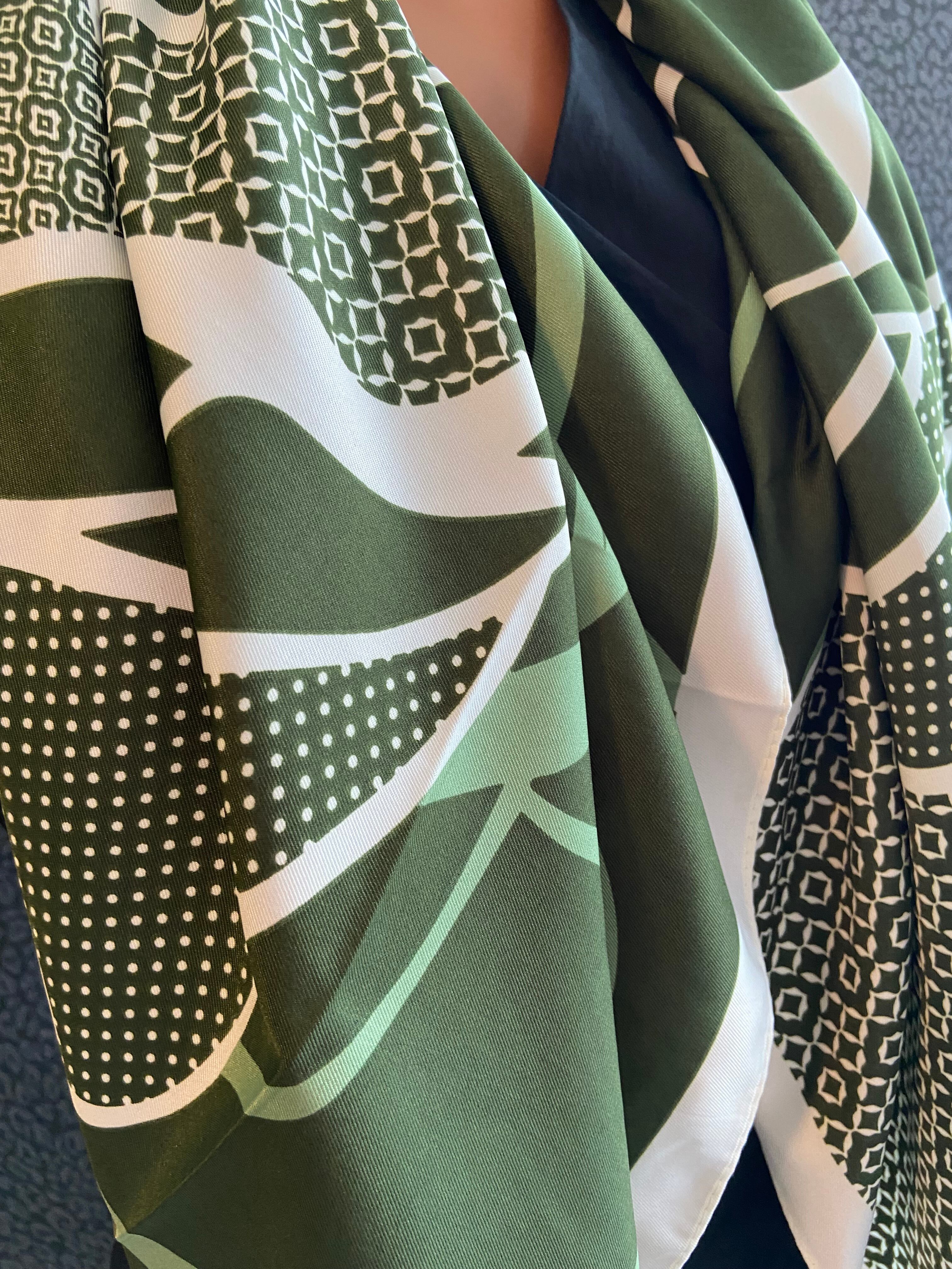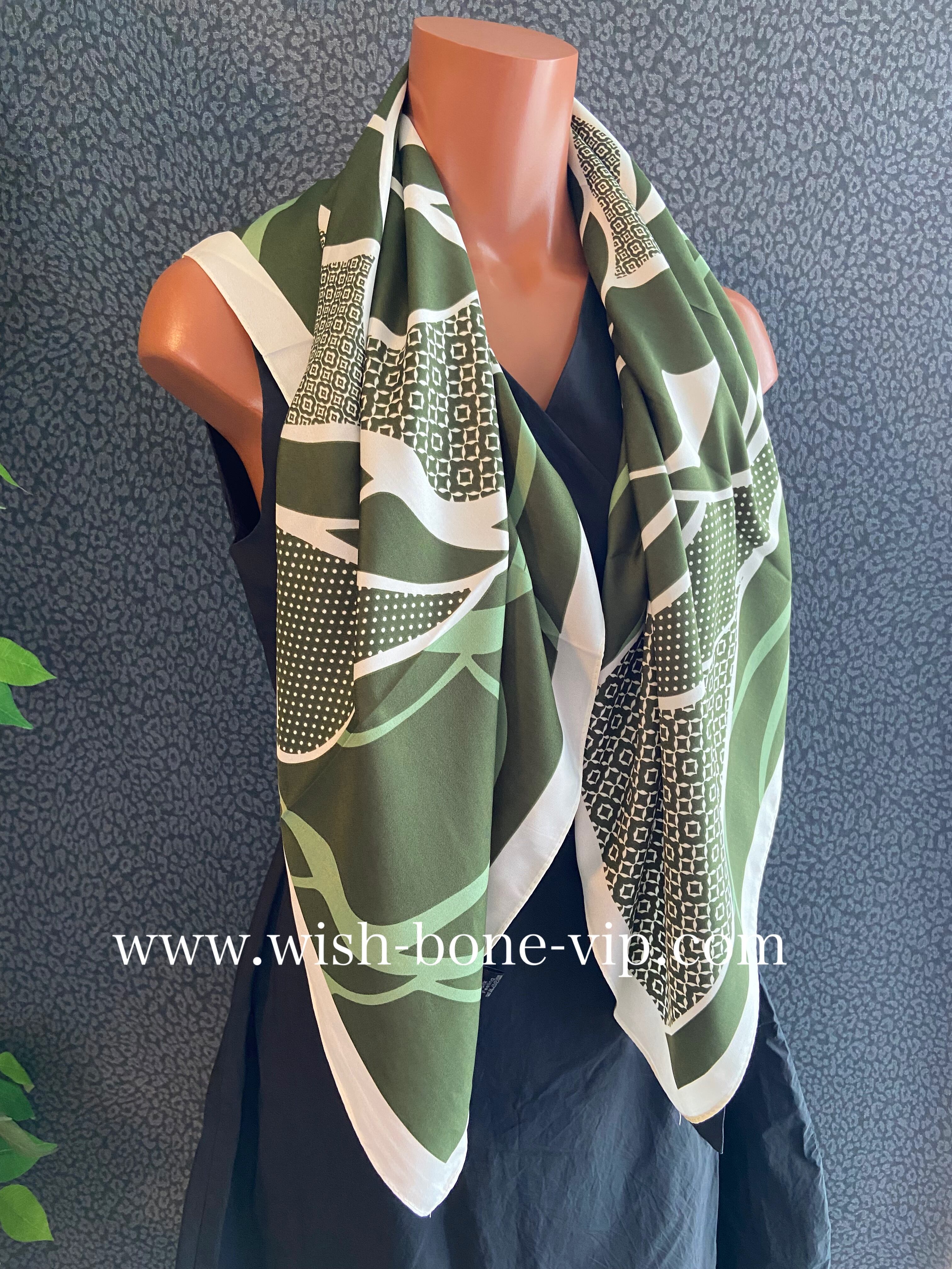 インポート大判ストール 90cm 大判スクエア Silk Feeling おしゃれなツヤスカーフ/グリーン
