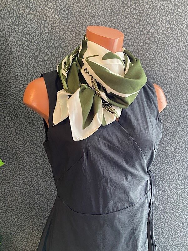 なめらかで程よいツヤっぽさがキレイめなコーデにピッタリなアクセ感覚のスカーフです。サラッと首にかけるだけで紫外線対策や、シンプルなお洋服にワンポイント!ステキです。レストランやバーなどお食事の時に巻いててもキレイです。