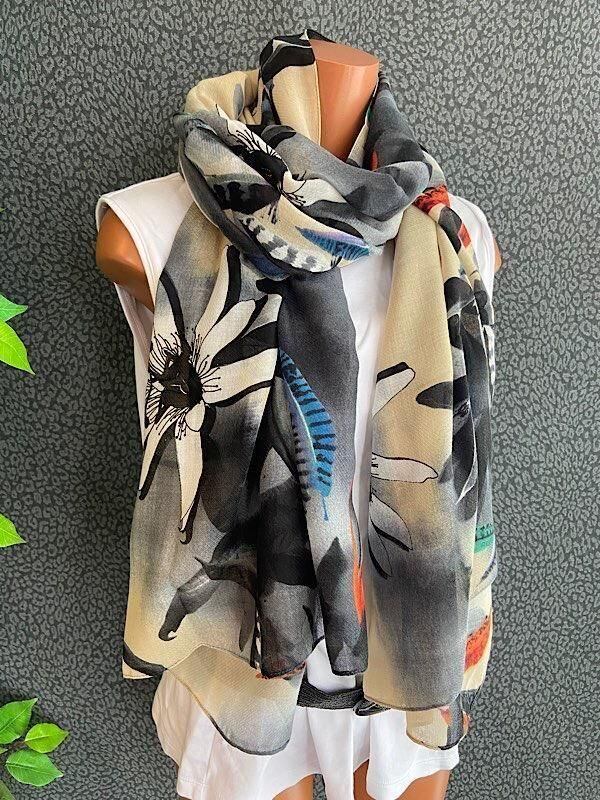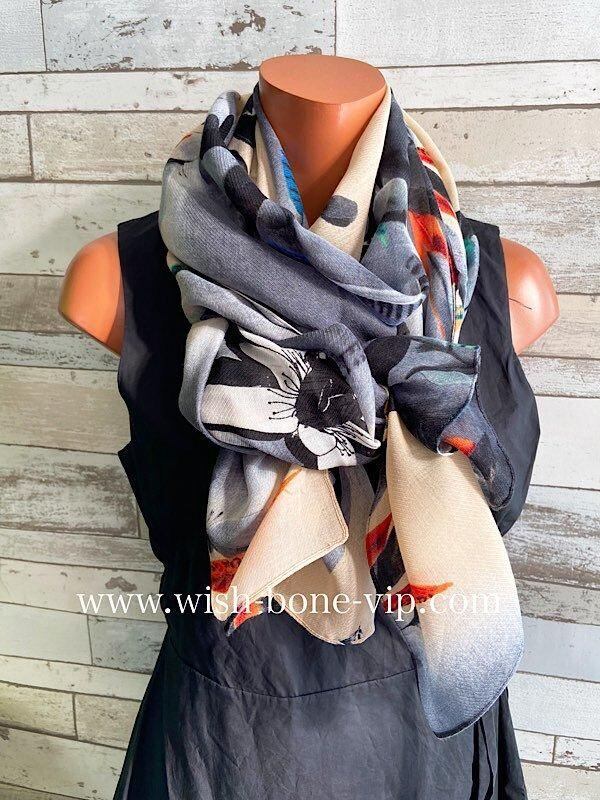 インポート 大判ストール|ロングストール・スカーフ|モノトーンフラワー