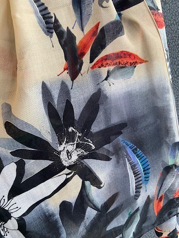 表記のサイズには多少の誤差があります。丁寧に取り扱いメーカーより仕入れていますが、製作の過程などで小さな織り傷やプリントの色むら、小さなシミのようなかすれがあるものもございます。スカーフとして巻いていただくには気にならない程度かと思います。インポートならではな色柄デザインをお楽しみいただけたらと思います。