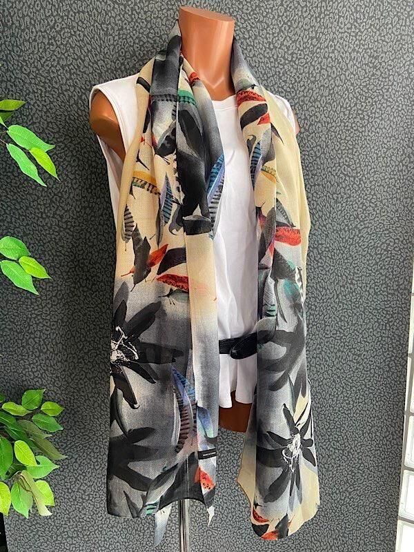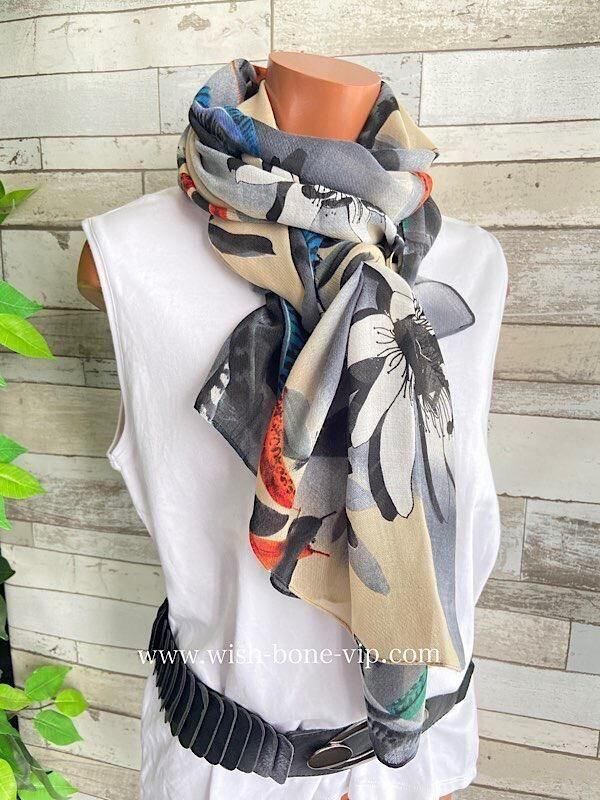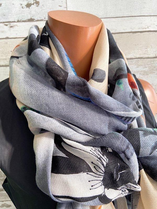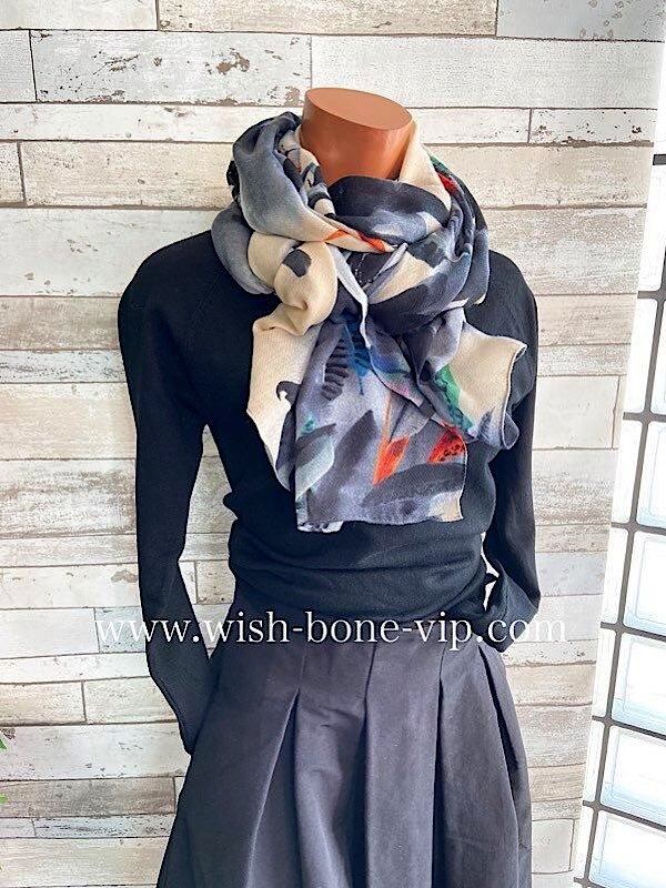 ぐるっと巻くだけでも良いですし、垂らすだけでもオシャレ。肩から羽織るように掛けるだけでも、ガラッとイメージが変わり新鮮な気分♪です。プレゼントにも最適です。