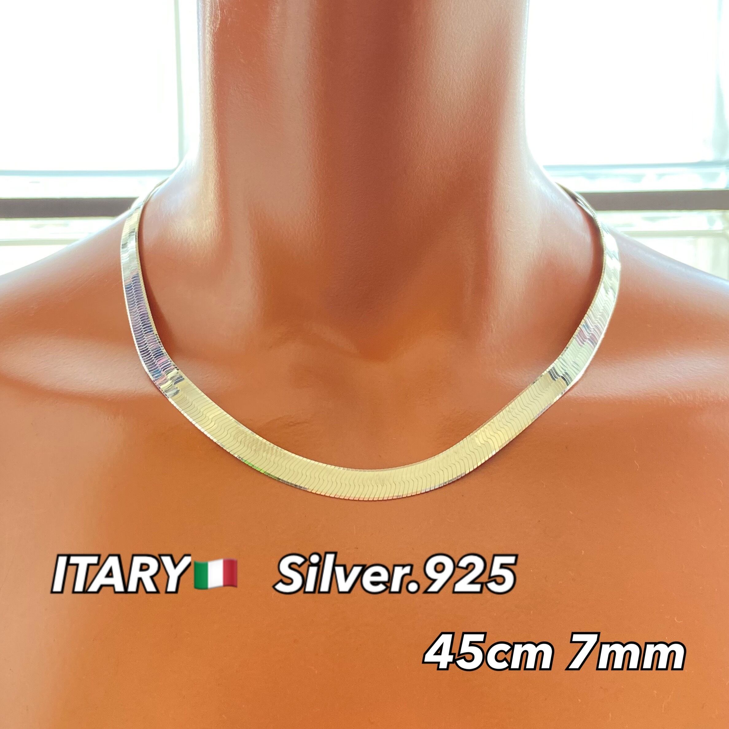 # シルバー925 ネックレス 45cm 7mm 重厚 スネークチェーン ITALY