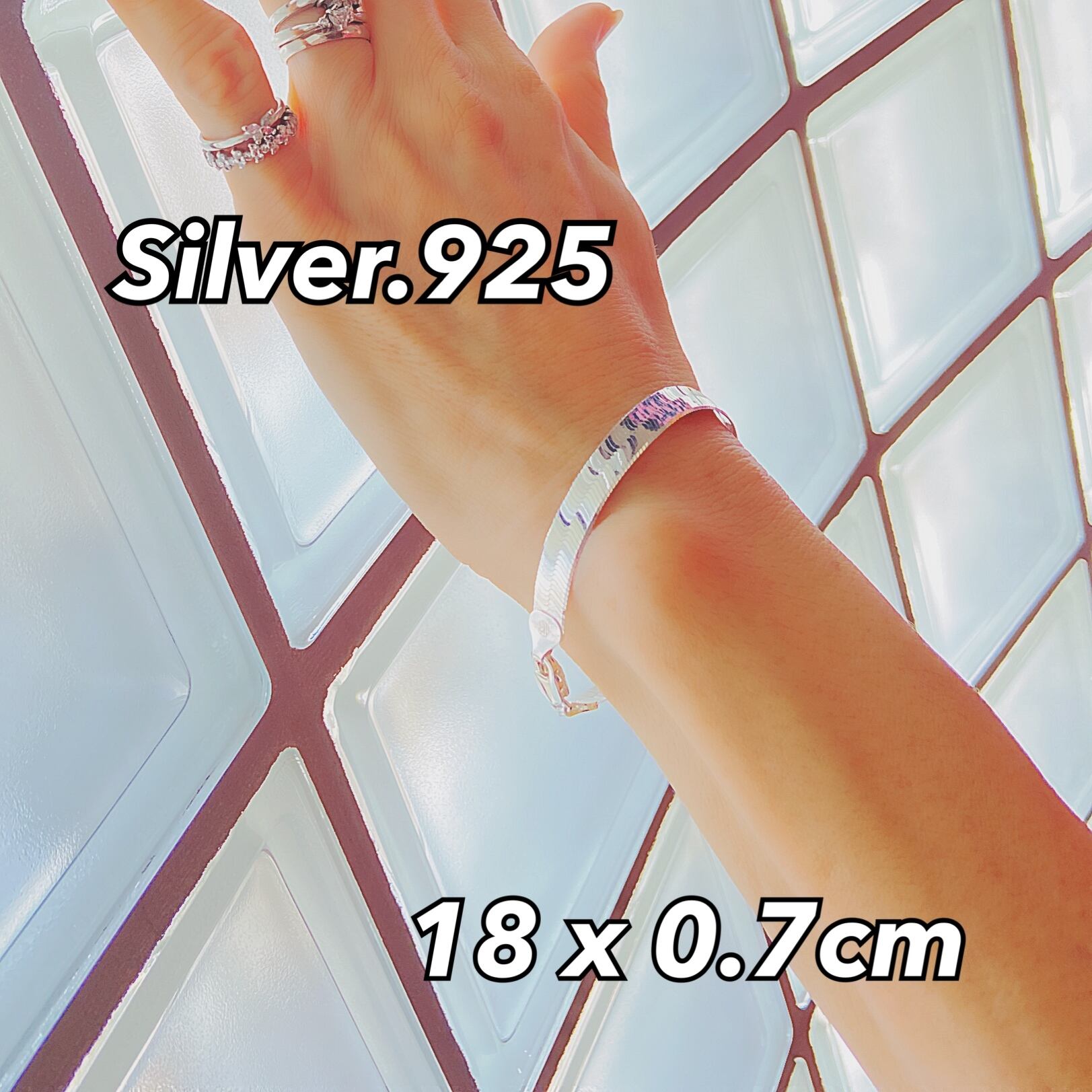 シルバー925のフラットチェーンで仕立てられた、シンプルでありながら存在感のあるスネークチェーンブレスレットです。幅7mmで、18cmの長さは、多くの手首サイズにフィットしやすく、アンクレットとしてもお楽しみいただけます!