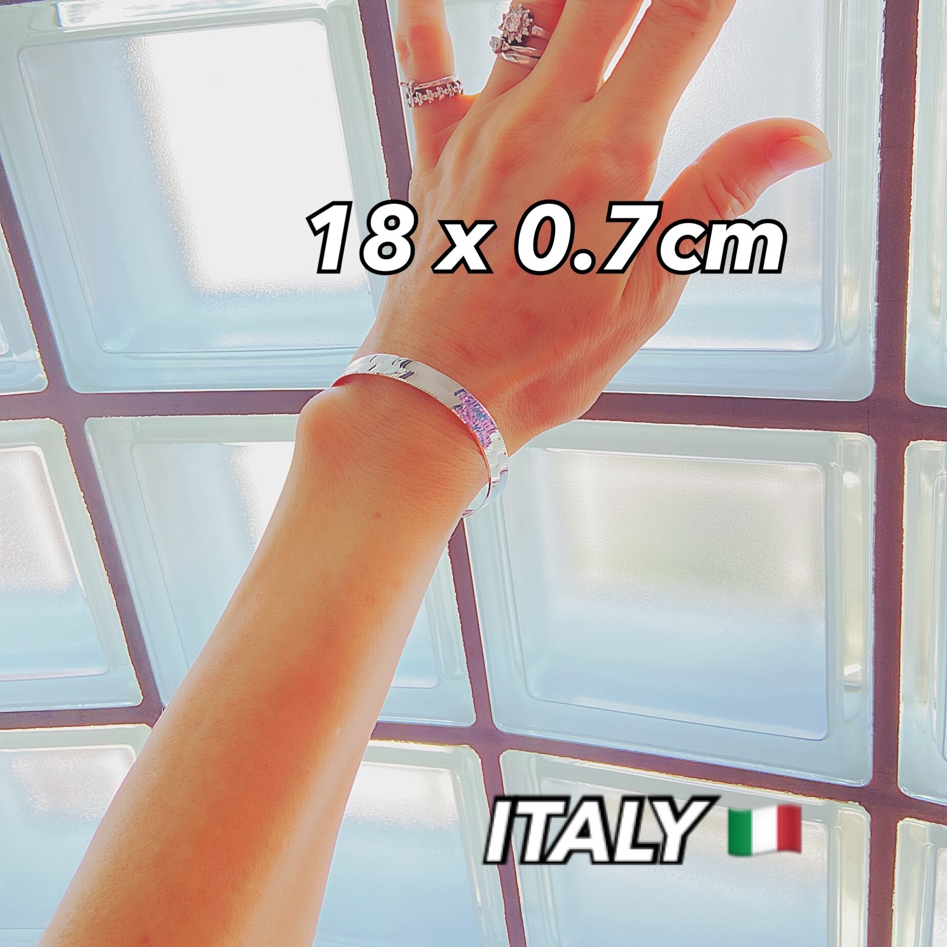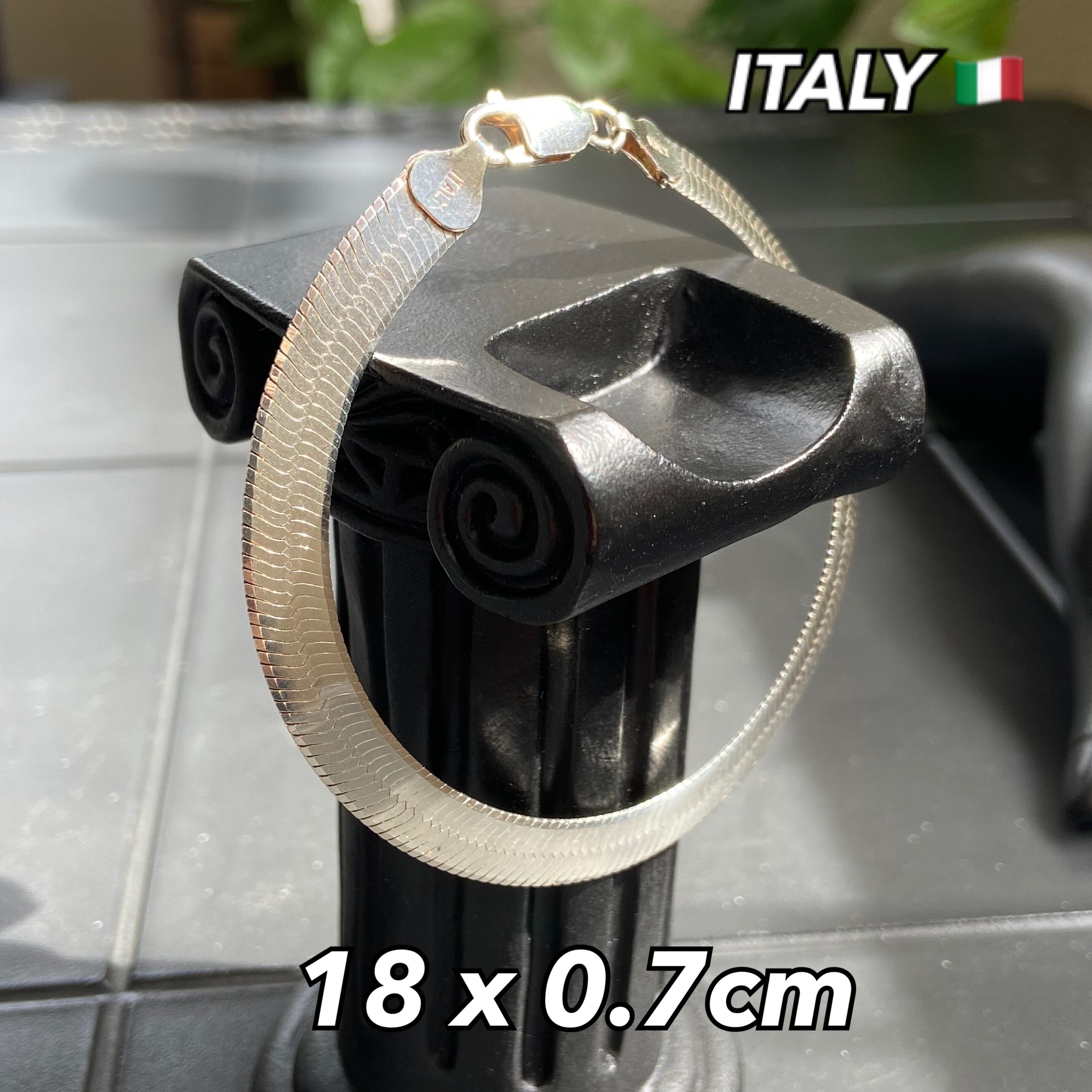 イタリア製 シルバー925ブレス フラットチェーン 18cm7mm幅 スネークチェーンブレスレット アンクレット