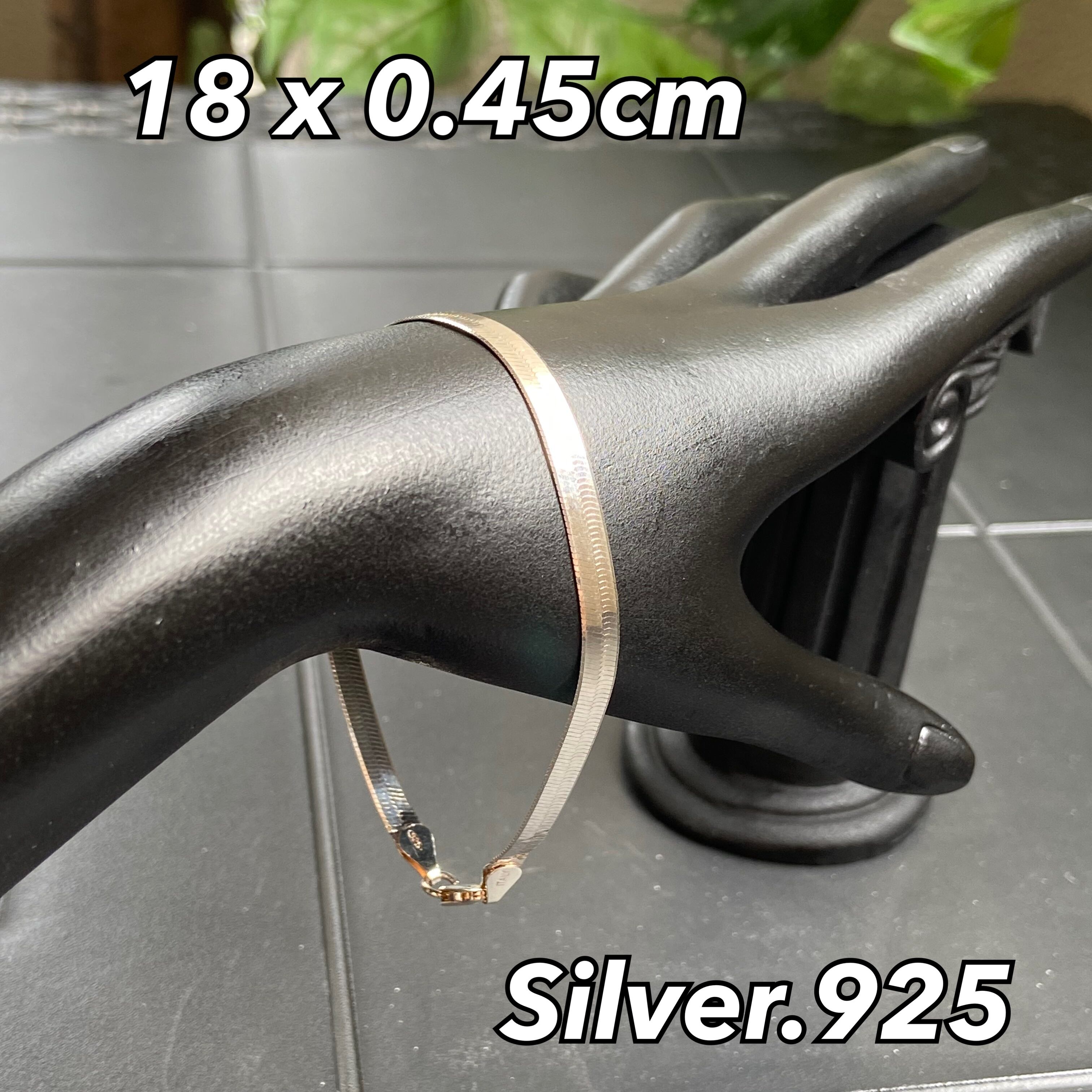 925シルバー製の美しいスネークブレスレット、エレガントで洗練されたデザイン。シンプルながらも、一際目を引く存在感があります。
