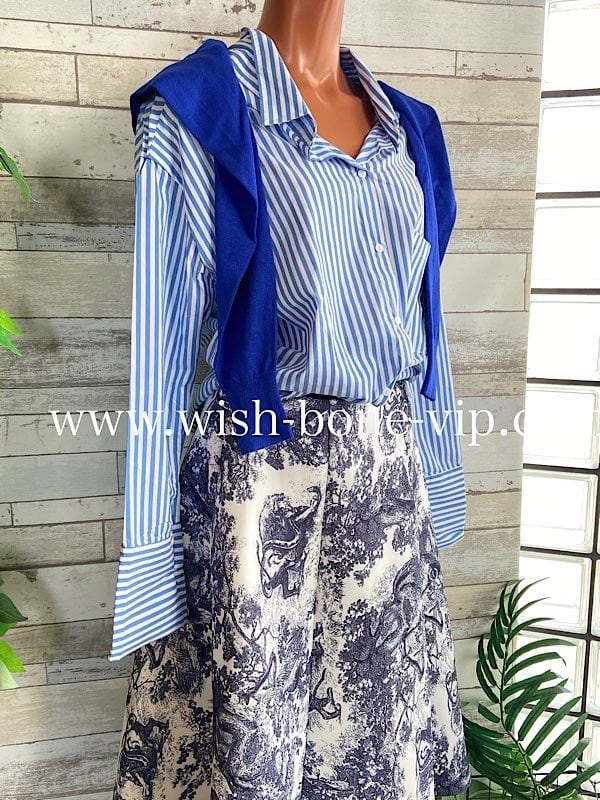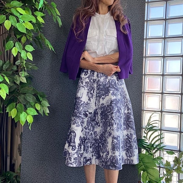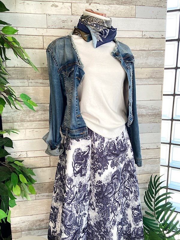 少しハリのある厚地生地と縦の切り替えがスッキリと見せてくれ、意外とコーデがしやすい色柄ですよ。