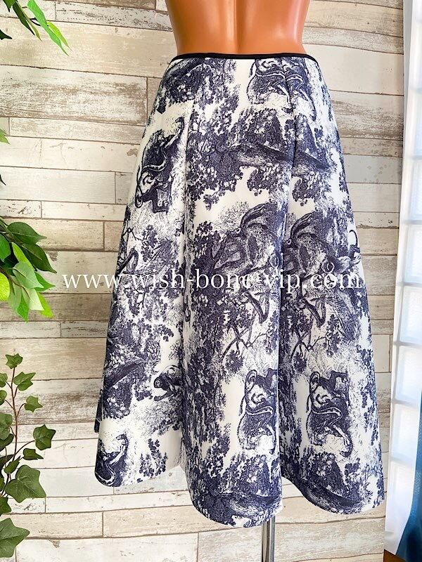 美シルエット 厚地モノトーン Aライン・台形 ミディアム丈スカート|ホワイト&ダークネイビー
