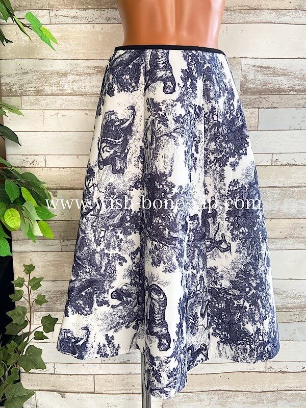 ウエストゴムですのでフリーサイズです。生地はそこそこ厚手でハリがあるので、体のラインを拾いにくいのも良いかも。丈も長すぎないので合わせやすいのではないかしら。冬場はタイツなど合わせてもOK
