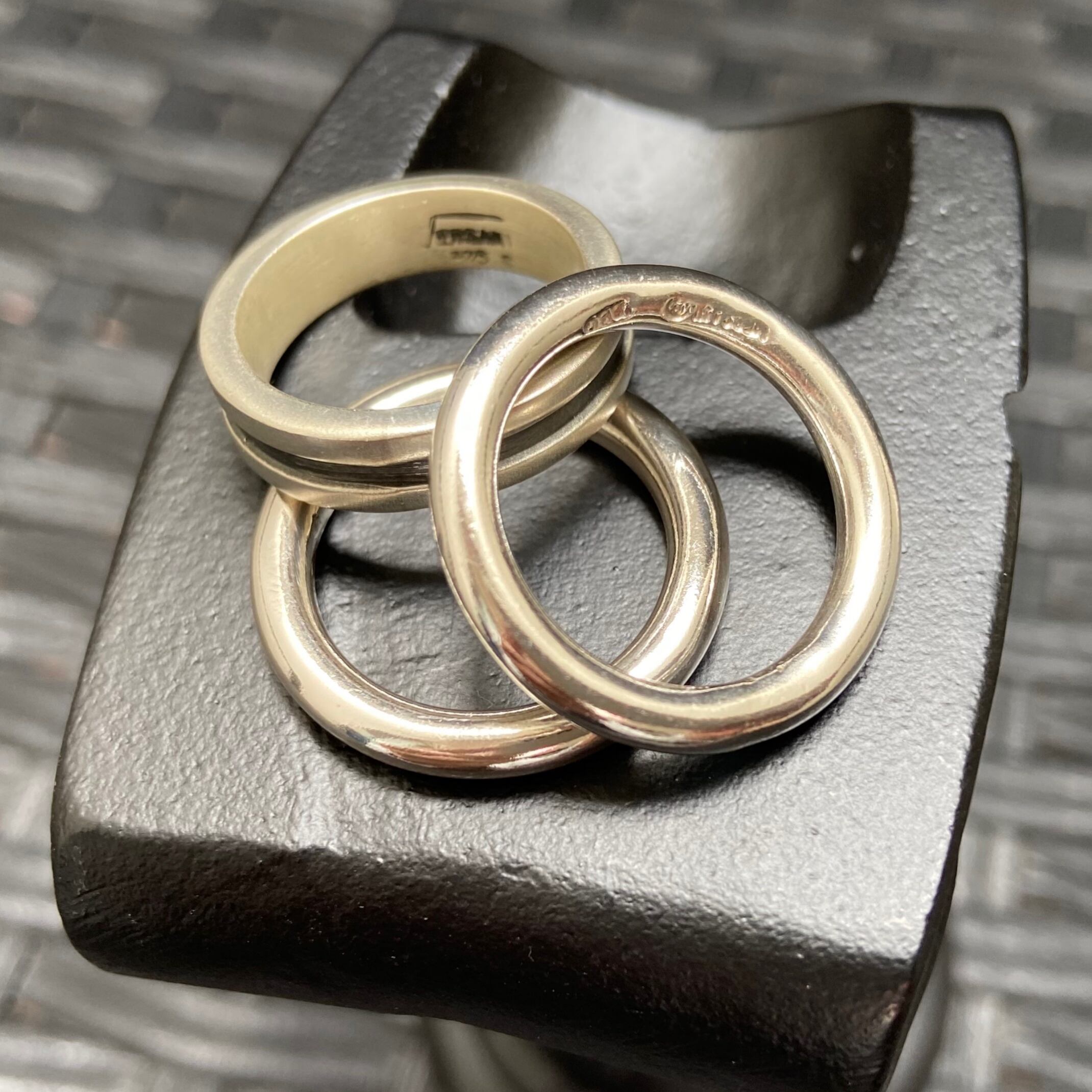 両サイドリングは艶あり、中央リングは艶消しマット
