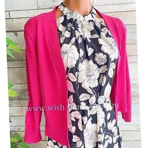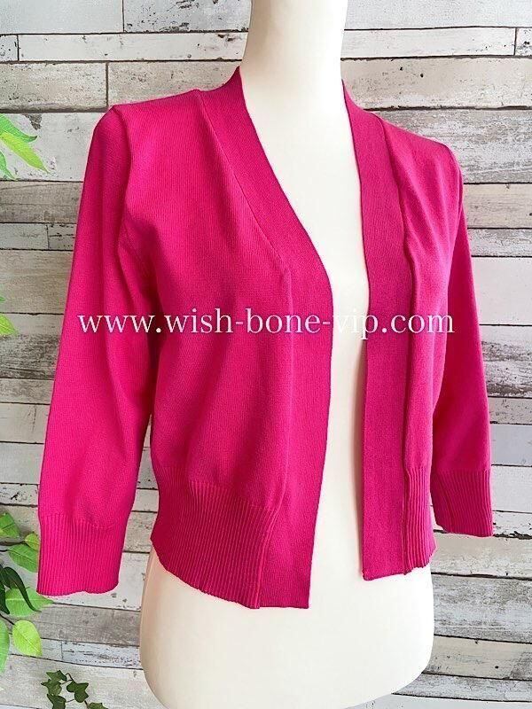 シンプルなデザインが使いやすい定番の羽織りもの、ビタミンカラーがステキなカーディガンです。この発色ピンクはなかなか無いです!