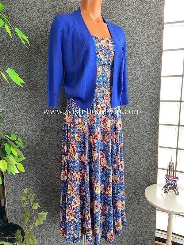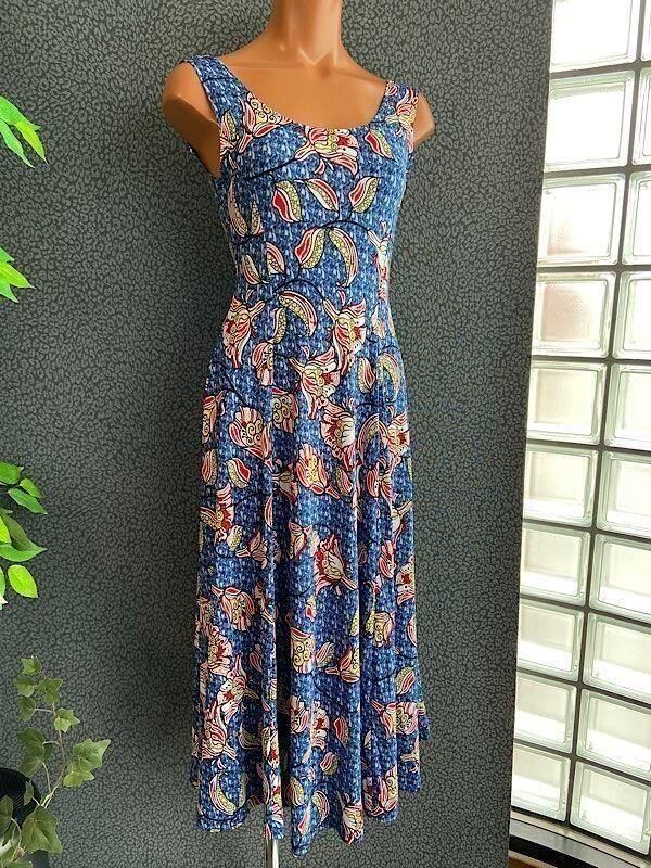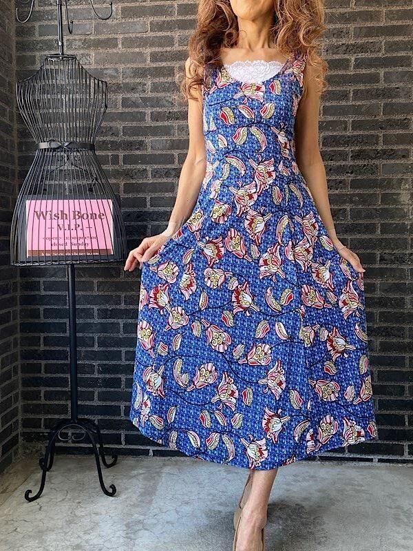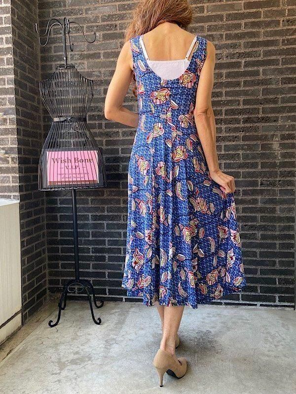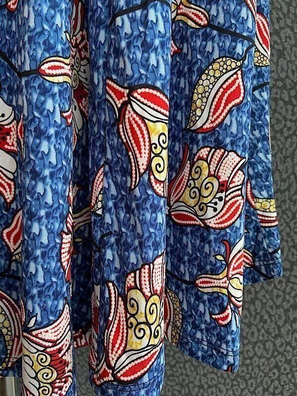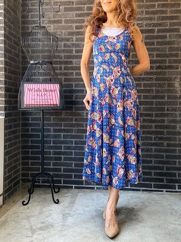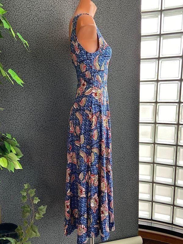 フランス製インポート・ロング丈マキシワンピース|フレアAライン・ストレッチ製ジャージ/ブルーフラワー(S)(L)