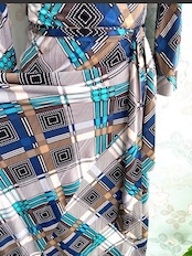 ラップのように巻いて着るのでフリーな感じです。ウエストも自分でくくって調節出来ます。