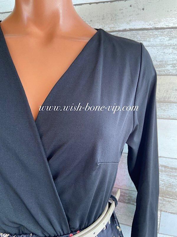 トップは七分袖でジャージ素材ですので着やすく、ウエストからボトムはシフォンのような華やかな切り替えがキレイなドレス系ワンピースです。