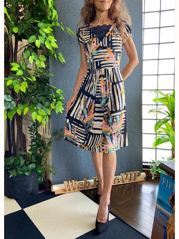 フランス製インポートワンピース|FIFILLES de PARIS フィフィーユ・パリ 洗えるプリントワンピース|ジャージ・ストレッチワンピース/マルチカラー