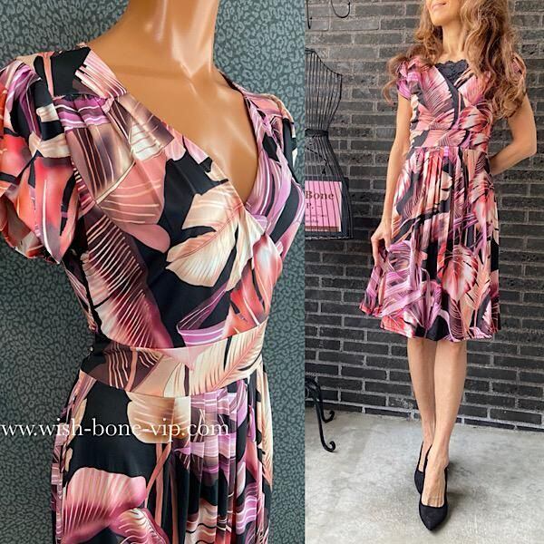フランス製インポートワンピース|FIFILLES de PARIS フィフィーユ・パリ 洗えるプリントワンピース|ジャージ・ストレッチワンピース/ピンク