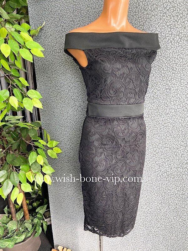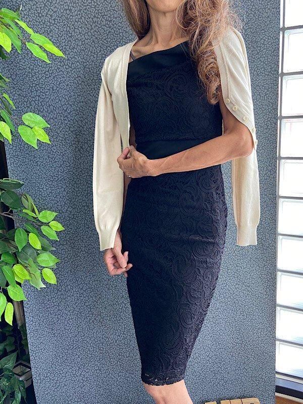UKイギリス製 インポートドレス・総レース タイトワンピース・パーティー・二次会ドレス ひざ丈タイトワンピース/ブラック (12)