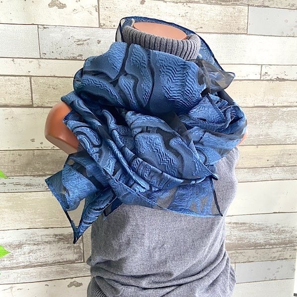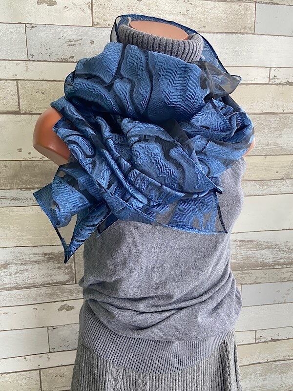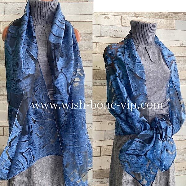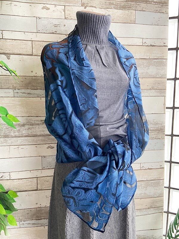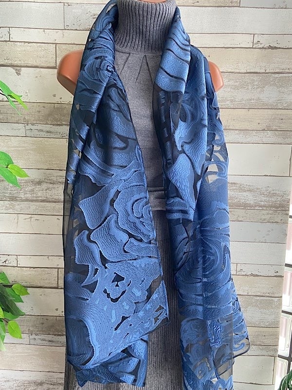 青い薔薇シースルー立体ROSE 大判ストール・ショール&ロングスカーフ|羽織りショール/ネイビーROSEローズ・バラ