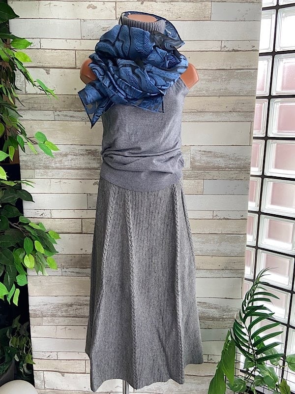 も見えそうな、遊べるスカーフです。生地として持っててもコーディネートがワクワクしそうです。