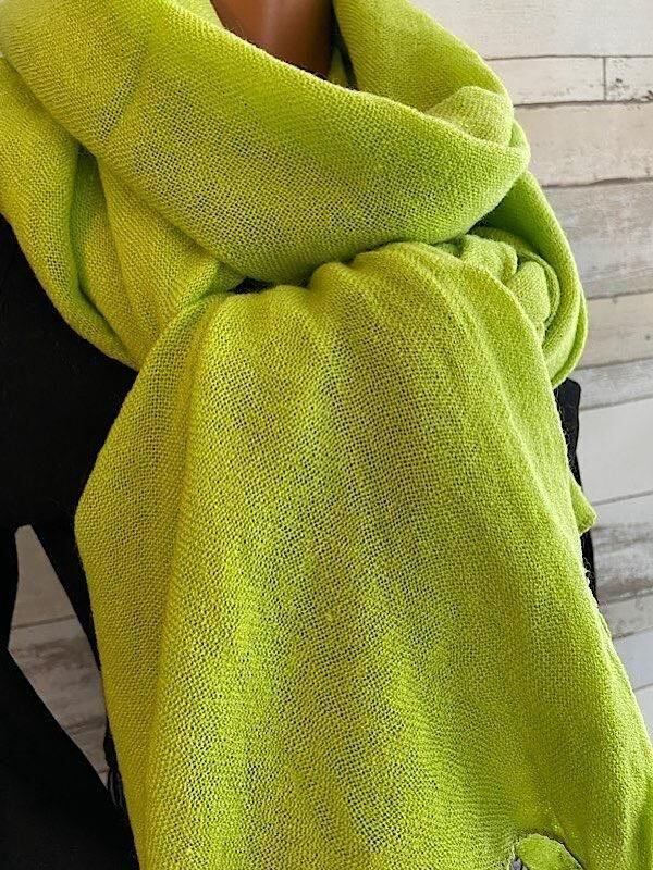 SALE【フランスインポート】ロング 暖かい冬物 ストール・大判 フワフワ暖かい アクリルスカーフ/グリーン