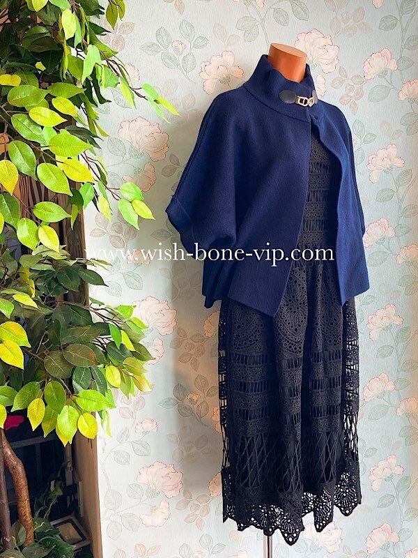 ITALY イタリア製|クラシカルデザイン 厚手ニット アウター・ポンチョ・マント風|ネイビー