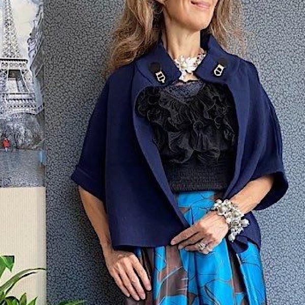 ドレッシーなドレス系ワンピースに、パッと羽織ってお食事や結婚式などのお呼ばれにステキですよ。また、中にタートルニットなど合わせてカジュアルなお洋服にもおしゃれで良いかも。
