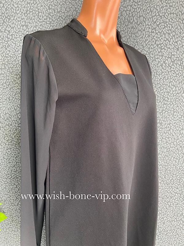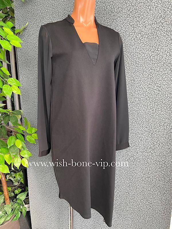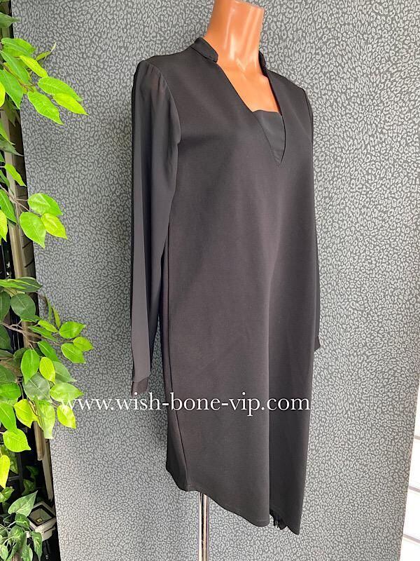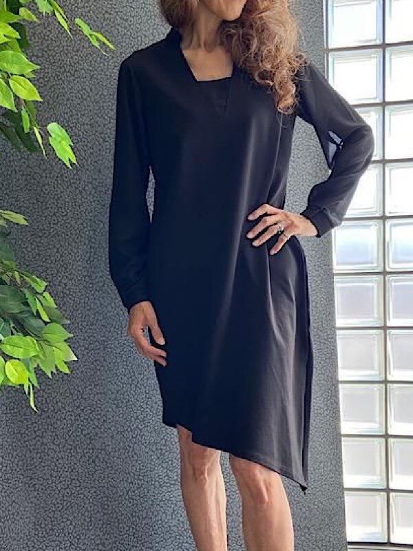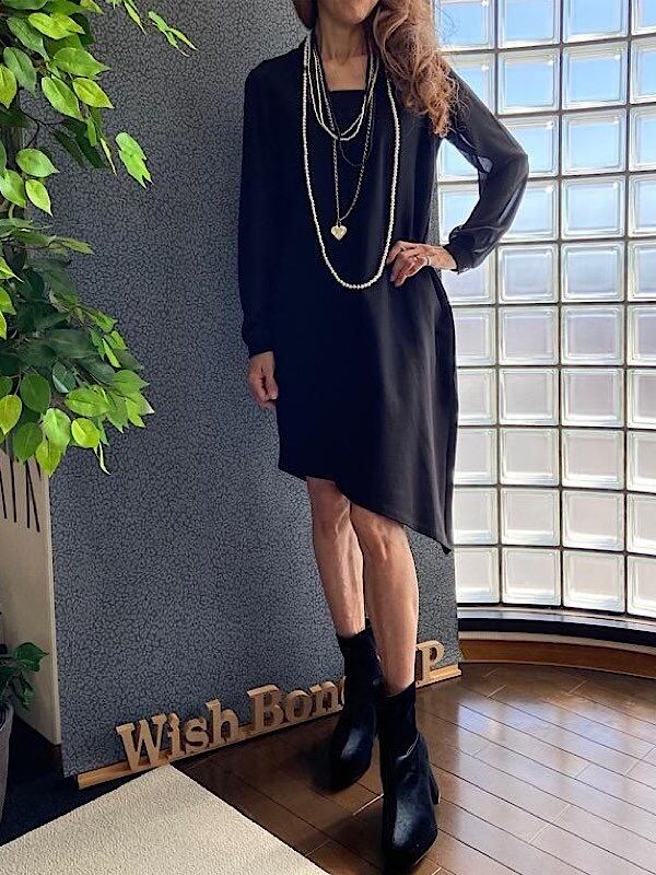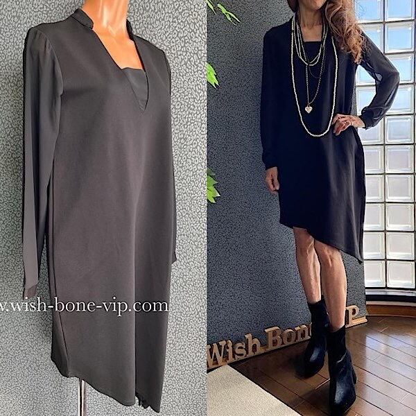 SALE/イタリア製ドレス・ワンピース/made in ITALY|すそアシンメトリー&シースルー長袖ドレス・二次会・パーティーワンピース/ブラック