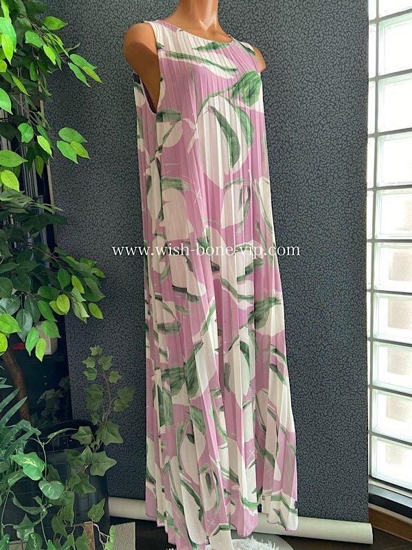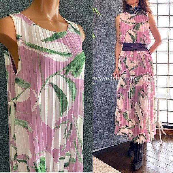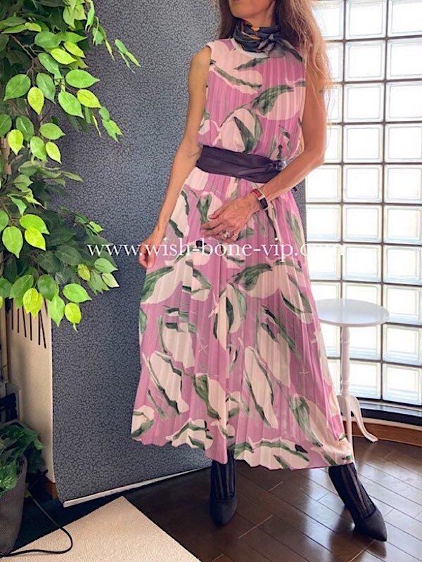 ITALY/イタリア製インポート・マキシワンピース|シフォン系プリーツ ロングドレス| ボートネックAライン|ロング丈マキシワンピース/ピンクパープル(Free)