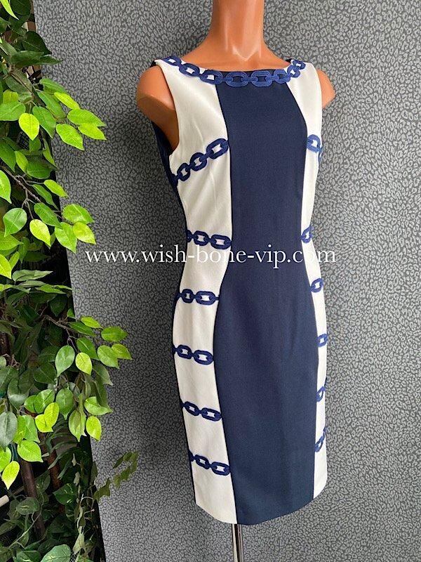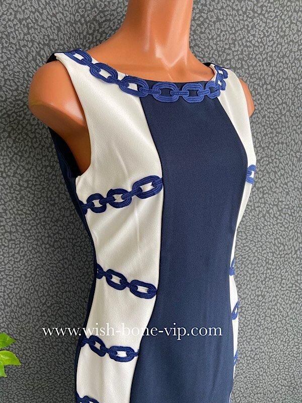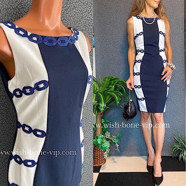 ネイビーとホワイトの切り替えバイカラーがカッコいいタイトドレスで、Made in Italyという品質の高さと洗練されたデザインが融合!リナシメントブランドならではの上質さを感じられる一着です。