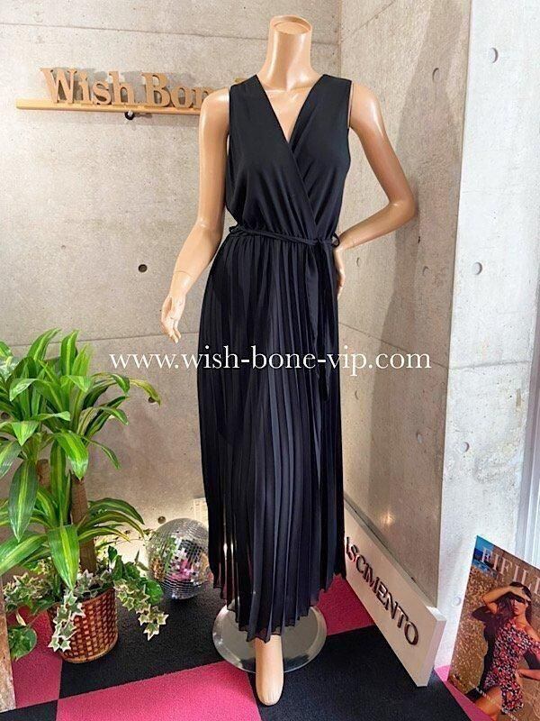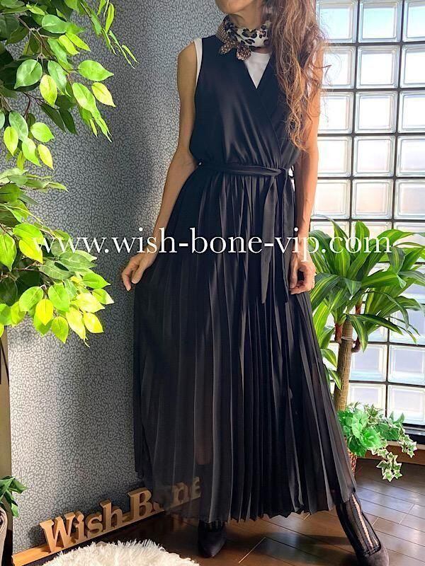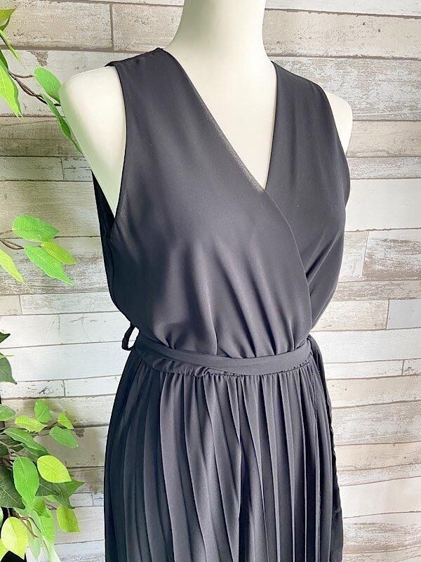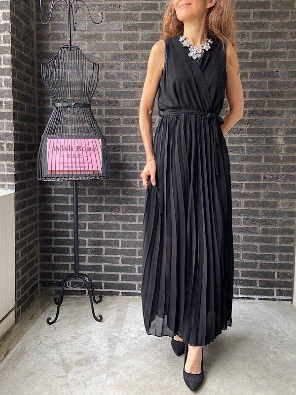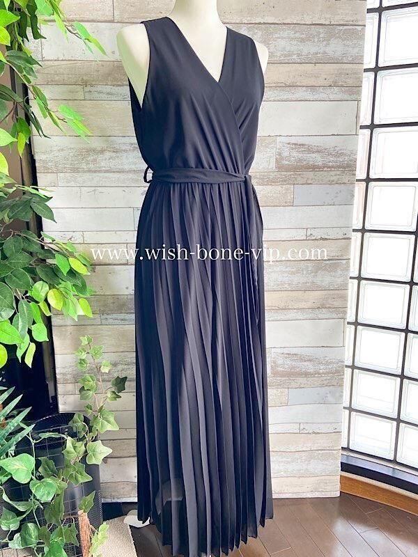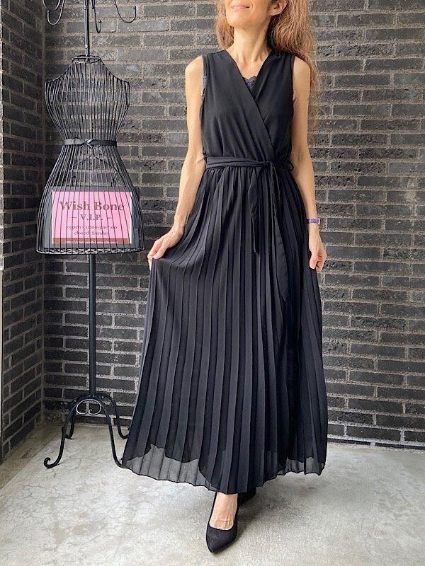 イタリア製インポートドレス Made in ITALY|シフォンプリーツ・二次会・パーティーロング丈・マキシワンピース・マキシドレス/ブラック(Free)