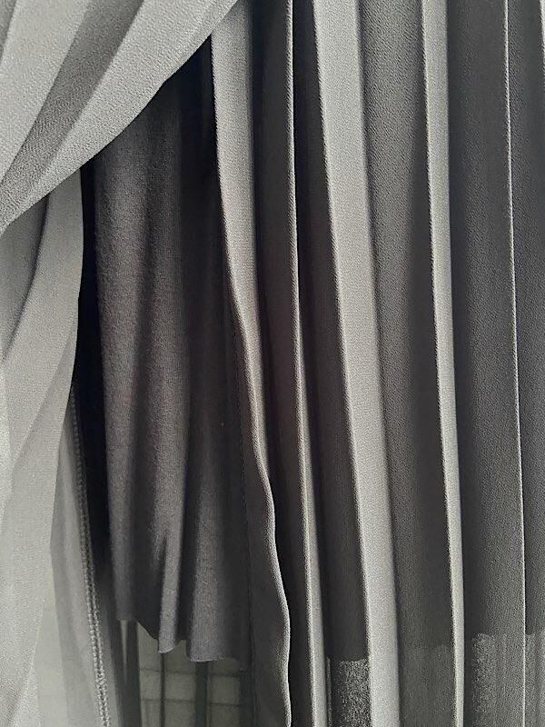 ウエストはゴム+リボンベルトで調節なので、フリー感覚。足元も動くとラップ巻きが広がってとても綺麗!インナーは膝ぐらいまであるので安心です。透け感もプリーツだからなのかそんなに気にならない感じです。