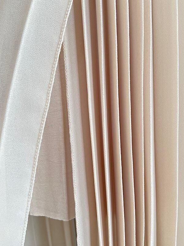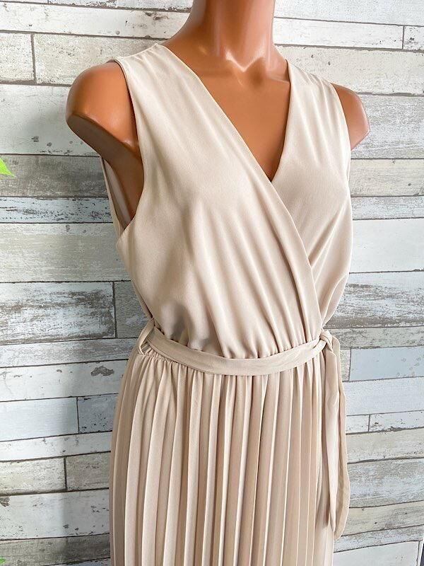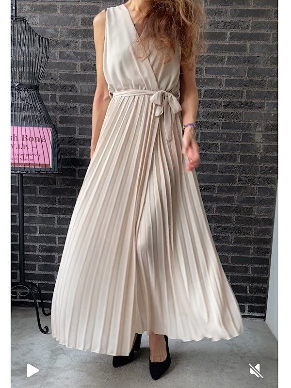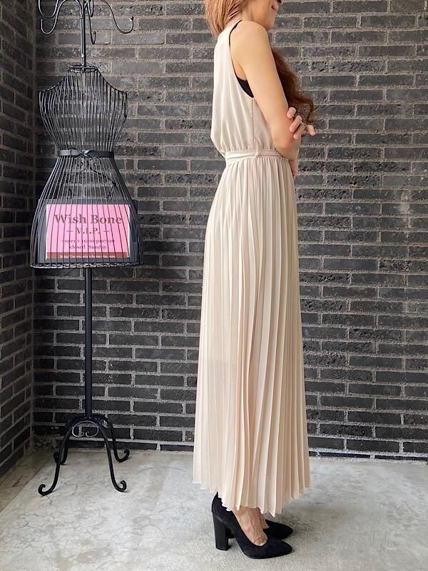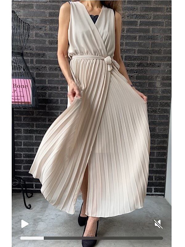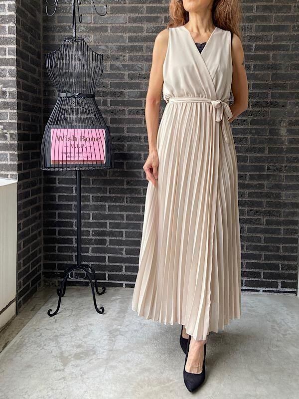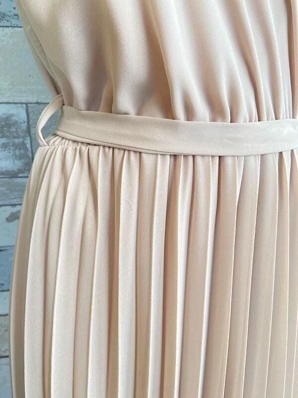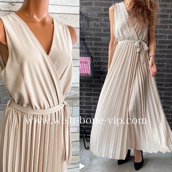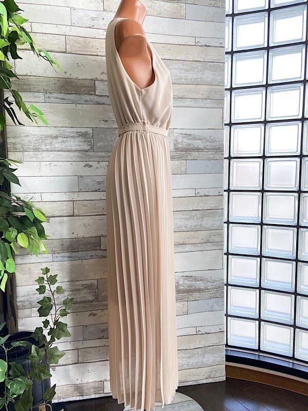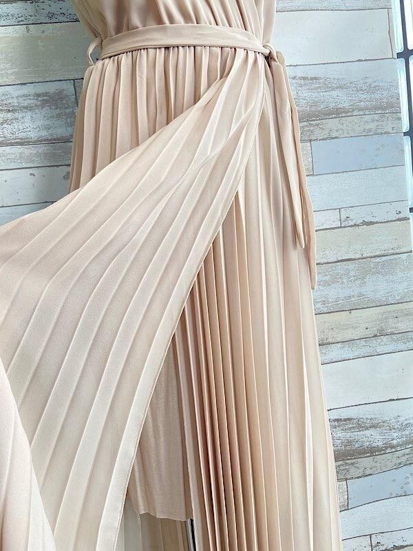 イタリア製インポートドレス Made in ITALY|シフォンプリーツ・二次会・パーティーロング丈・マキシワンピース・マキシドレス/ベージュ(Free)