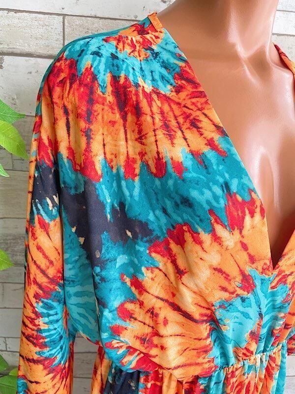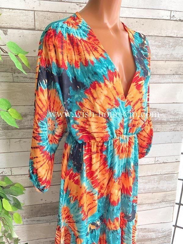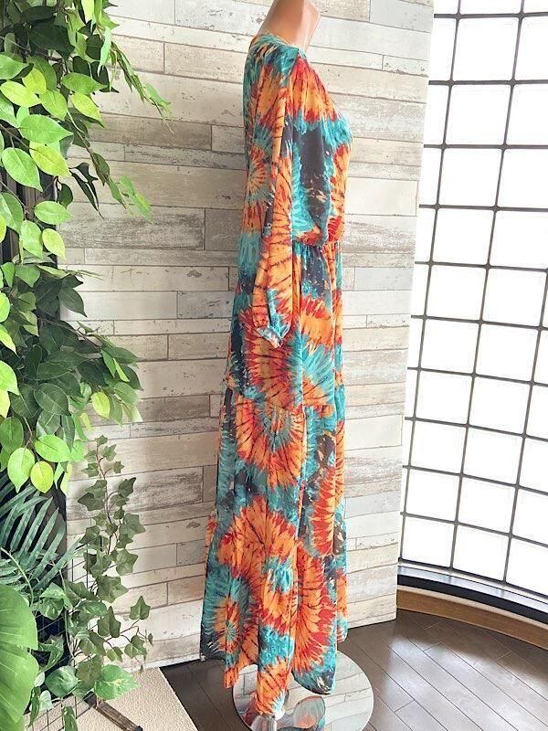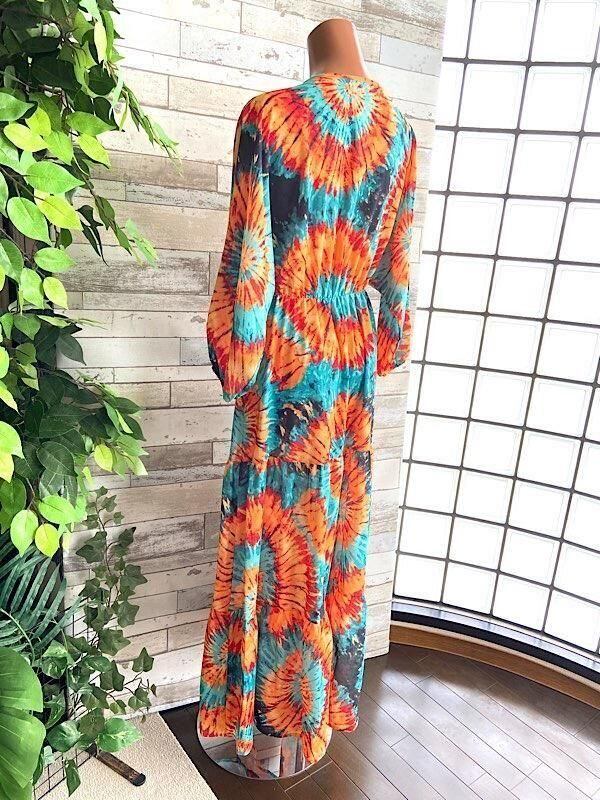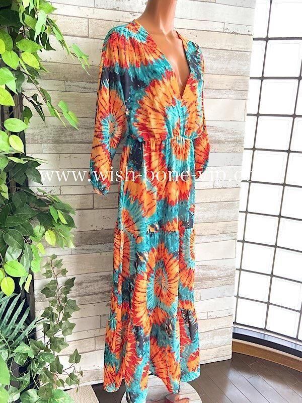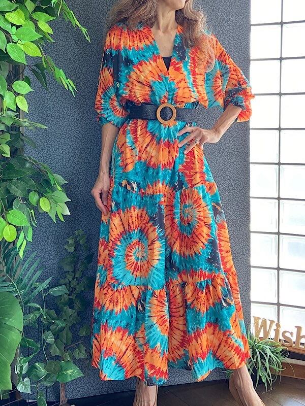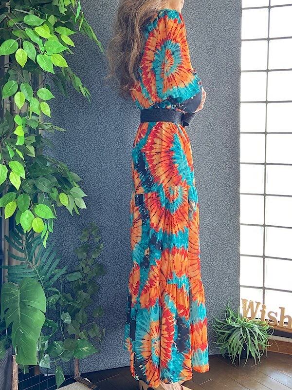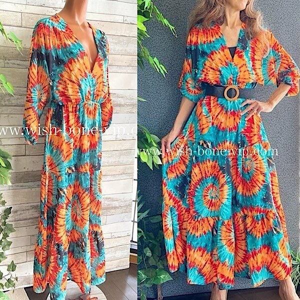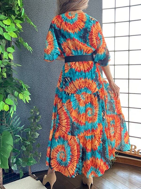 イタリアインポート アフリカン ロングワンピース|Made in Italy ドルマンスリーブ 長袖 マキシドレス・ロングワンピース /アフリカン柄オレンジ&グリーン