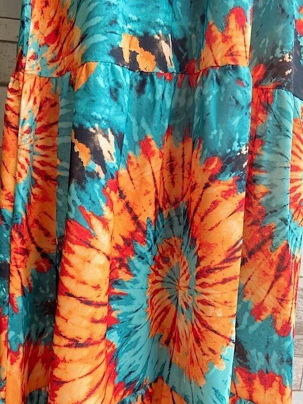 エキゾチックな魅力が詰まったアフリカンカラーがステキなロングワンピースです。華やかなオレンジとグリーンのアフリカン柄が、どこか異国情緒を感じさせますよ。