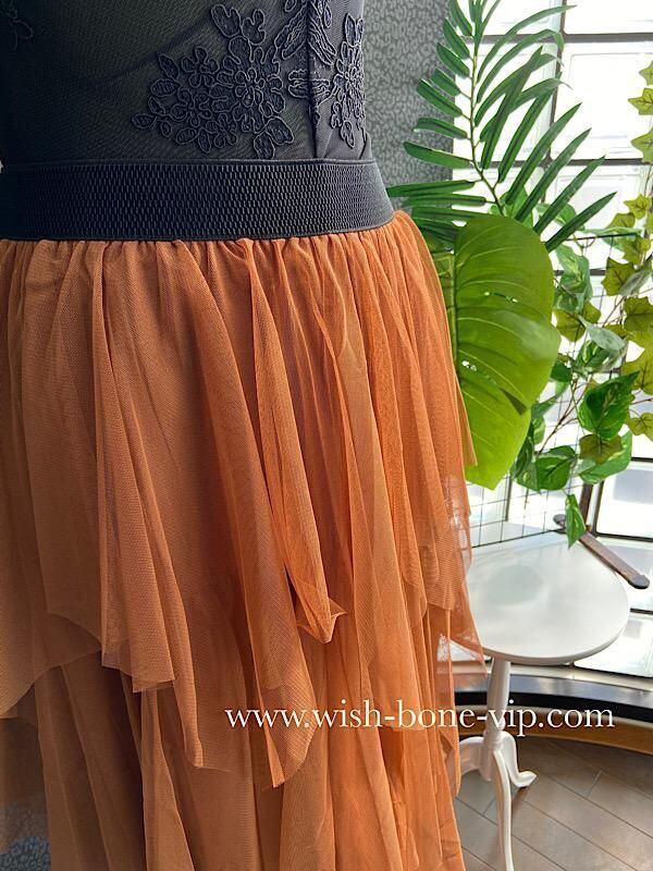 上部のスッキリさと、ボトムのフワッと感が、レトロなデザイン。飾っておきたいようなドレスです。