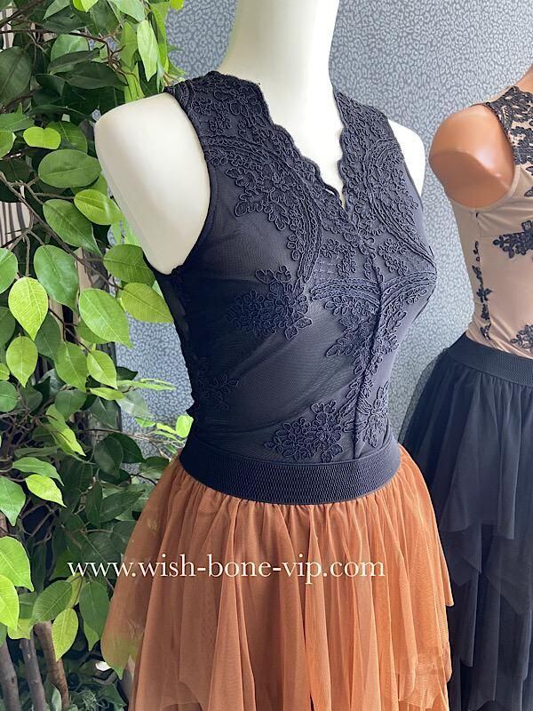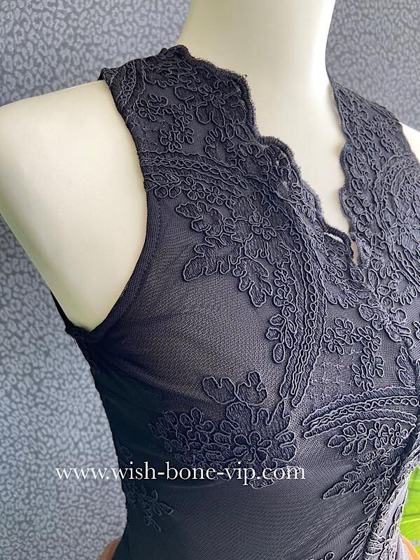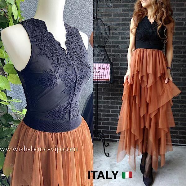 ITALY イタリアインポート|刺繍レース&シースルー レトロなマキシドレス風(トップス&ロングスカート SET)/ブラック&ブラウン