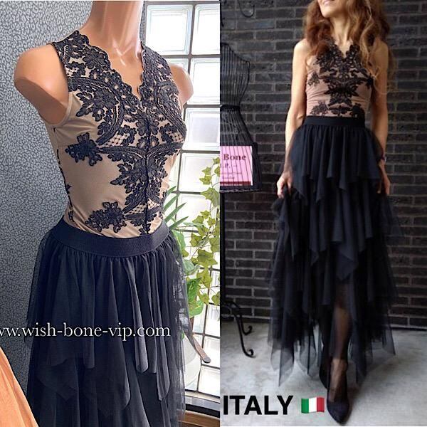 ITALY イタリアインポート|刺繍レース&シースルー レトロなマキシドレス風(トップス&ロングスカート SET)/ブラック&ブラウン